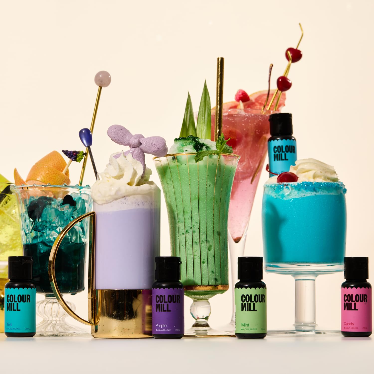 Colour Mill Pool Party Pack Aqua Blend Water-Based Food Coloring, 20 Milliliters Each of 6 Colors: Candy, Mint, Purple, Sky Blue, Teal and Yellow, 120.0 milliliters, 4.08 Fl Oz