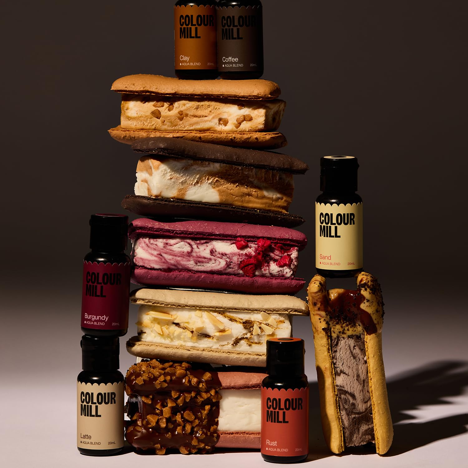 Colour Mill Outback Pack Aqua Blend Water-Based Food Coloring, 20 Milliliters Each of 6 Colors: Burgundy, Clay, Coffee, Latte, Rust and Sand