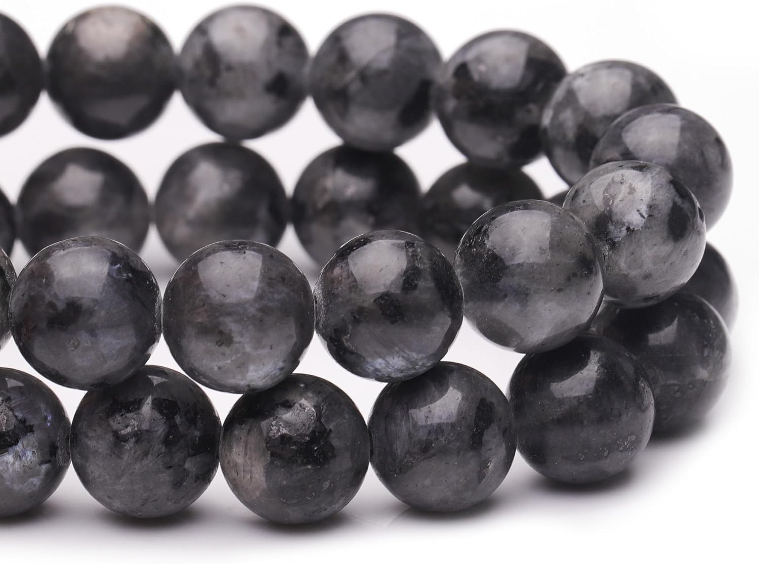8mm Natural Stone Beads for Jewelry Making,Larvikite Labradorite Polished Smooth Round Gemstone Beads for Bracelet Necklace 15 Inch