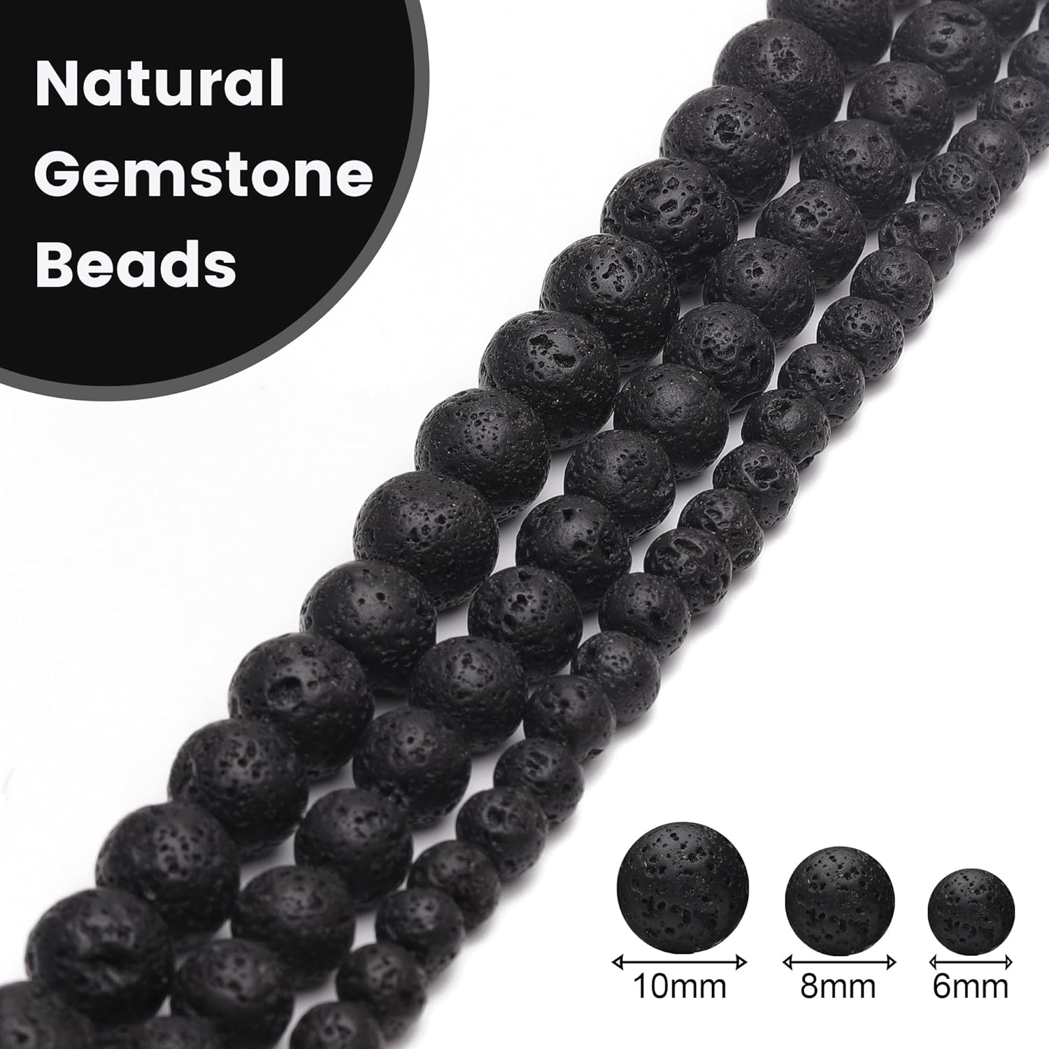 10mm Natural Stone Beads for Jewelry Making,Black Lava Polished Smooth Round Gemstone Beads for Bracelet Necklace 15 Inch