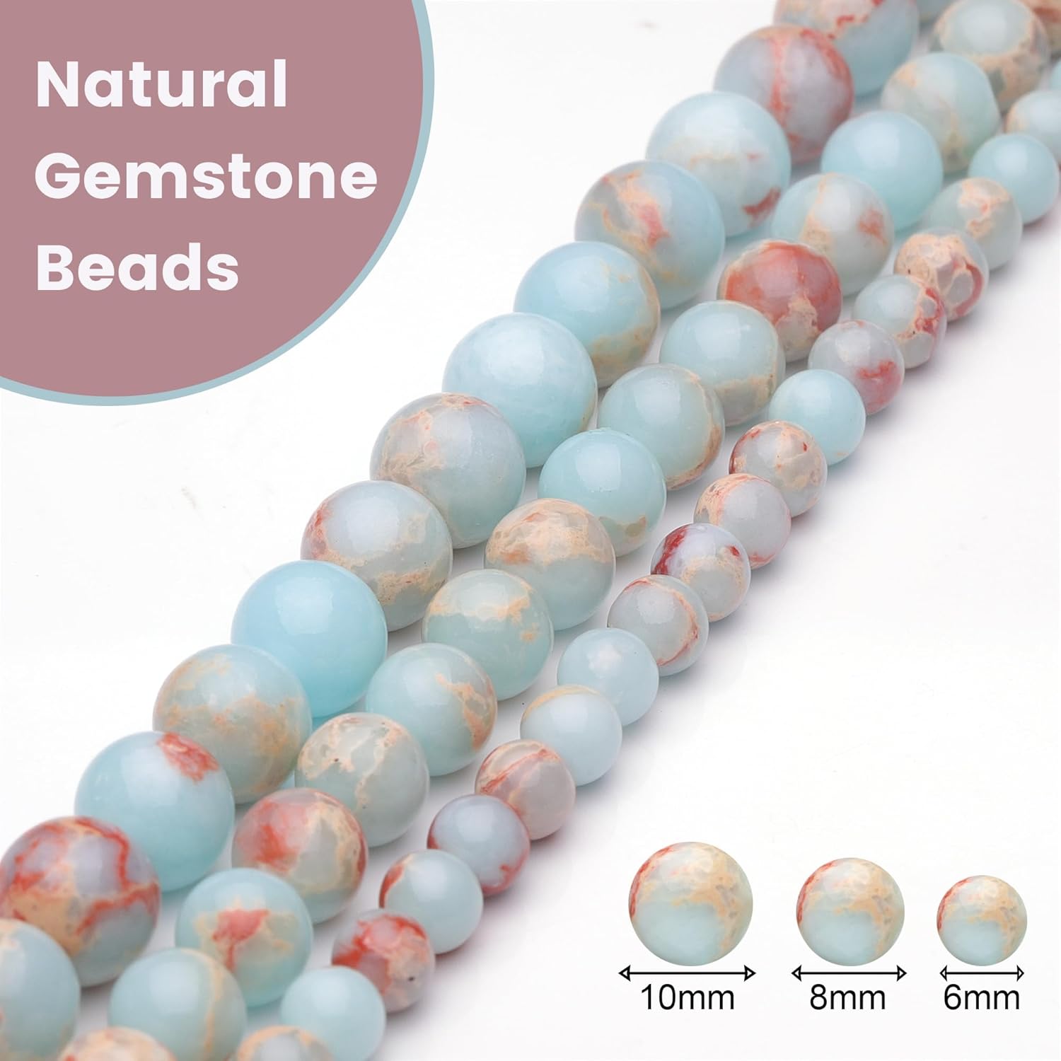 - Size:65 pcs 6mm stone beads; Beads Dia: 6mm; Hole Dia: 1mm