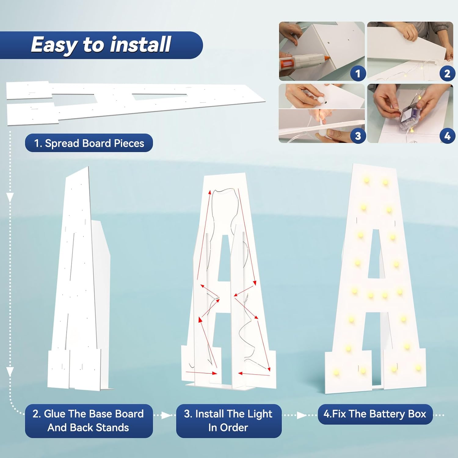 - 【4FT Marquee Light Up Letters】: 4 FT White pre-cut foam mosaic letter frame with warm white LED lights is an eye catching centerpiece for birthday party, wedding, baby shower and Christmas. Light up your party and make your indoor celebration more special
