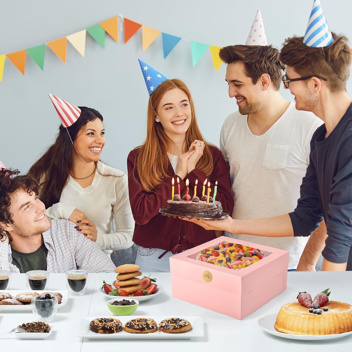 - Easy to Fold: Designed for convenience, these pink cake safe transport box with window are flat and pre-folded, easy to assemble. Fold the cake pop boxes along the pre-folded crease, put in delicious cake, Blank sticker allows you to write warm message on it, attach the sticker to the bakery boxes, adds a personal touch to your gifts