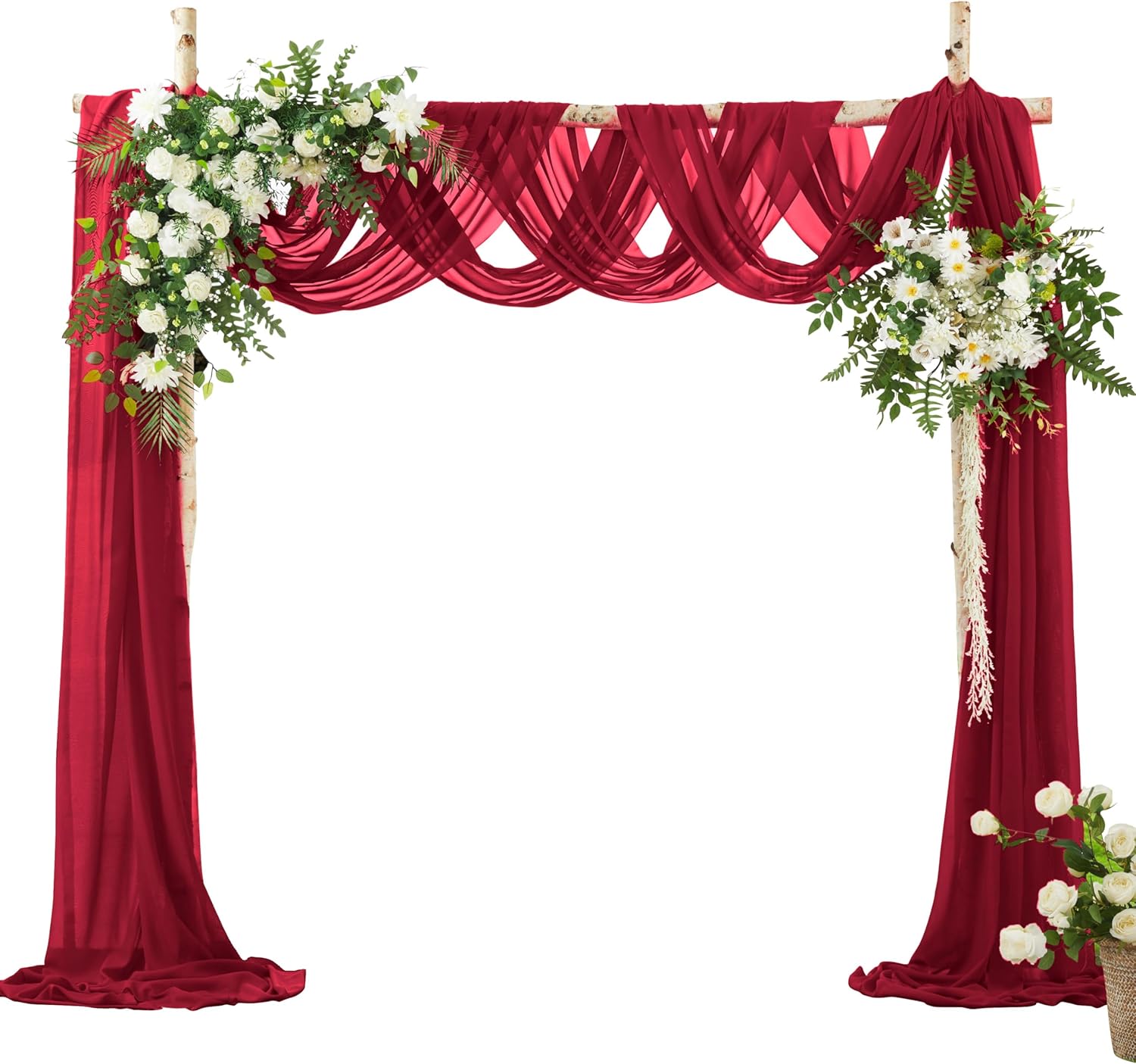 - SOFT CHIFFON FABRIC: Wedding arch sheer draping fabric is made of high-quality 100 percent wrinkle-free chiffon fabric. The chiffon backdrop drapes are silky smooth to touch and easy to hang, suitable for decorating wedding arches, party backdrops, photo backdrops. Machine washable, reusable, not easy to wrinkle and fade.