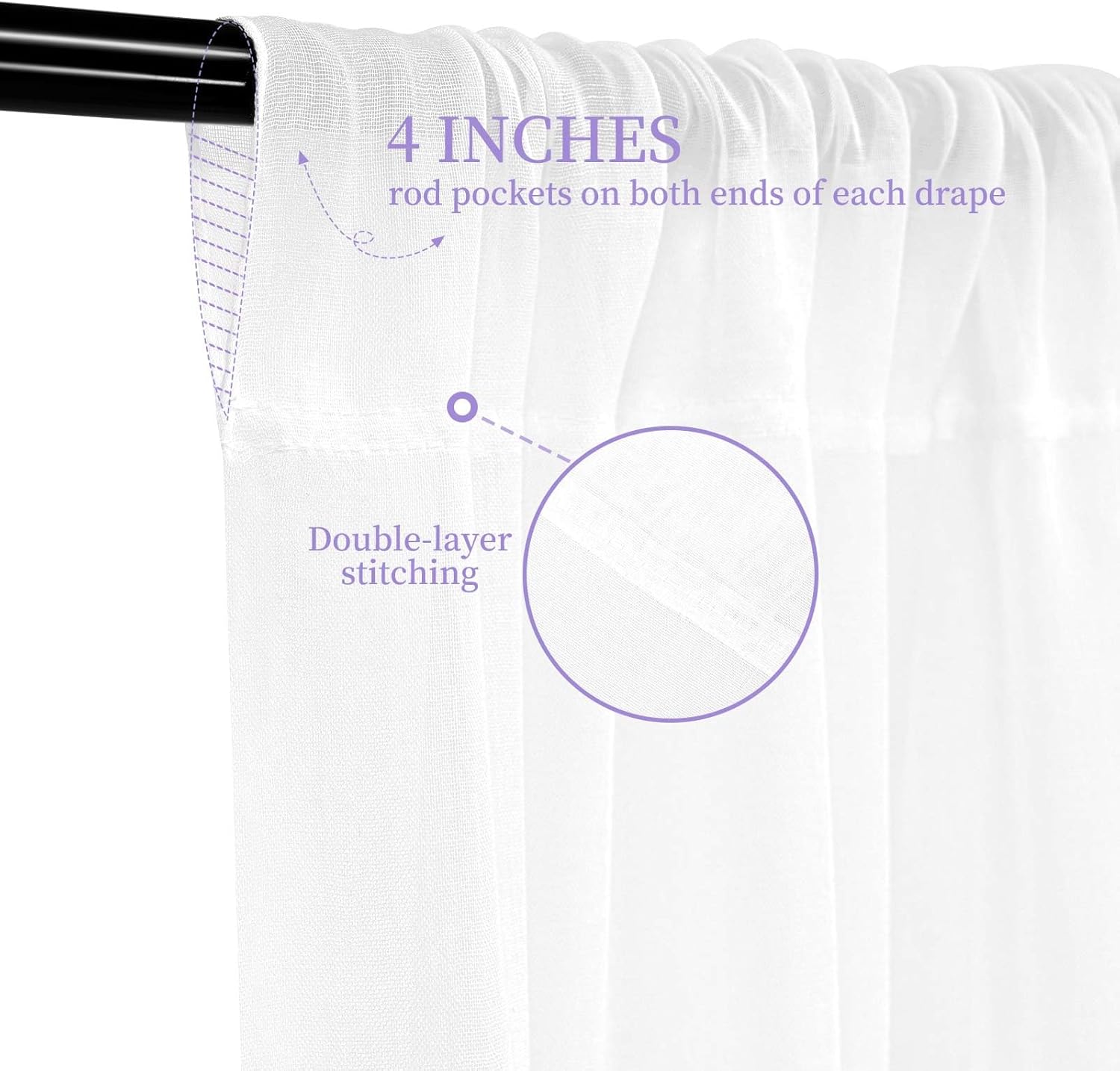 - 【Rod Pocked Design】There is a 4 inches pocket for rod or pole entry at the top and bottom of each panel creating beautiful draping. Sheer arch draping fabric are good choice to decorate your wedding and party. Different hanging methods will bring you various visual effects.