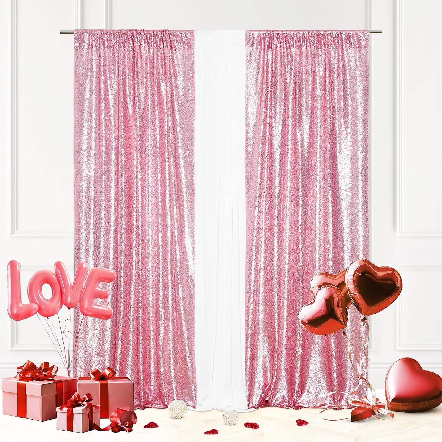 Eternal Beauty Sequin Backdrop Curtains, 2x8 Ft-2 Panels Fuchsia Pink Back Drop for Shimmer Photography Party Wedding Birthday Decor