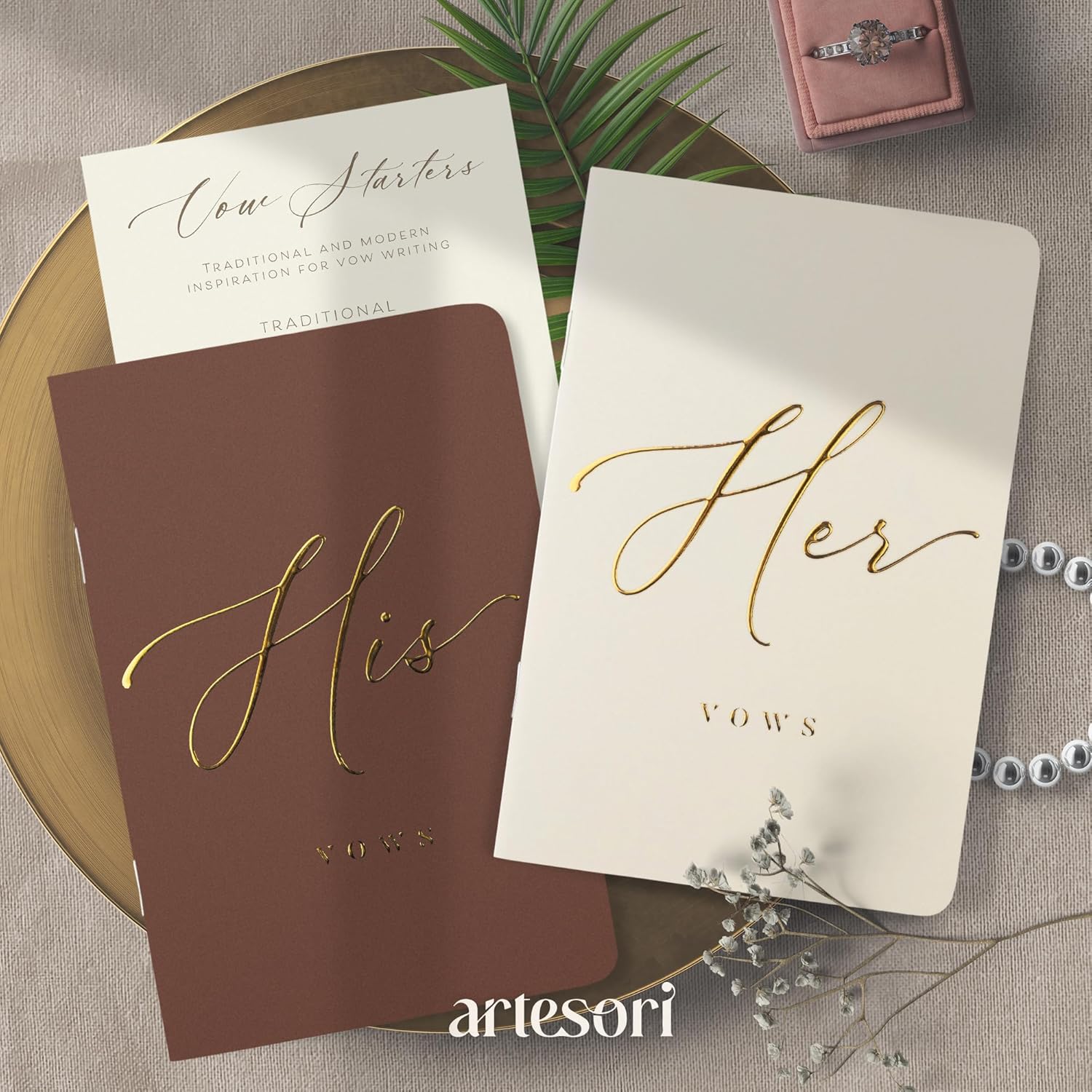 ARTESORI Wedding Vow Books His & Hers - Wedding Registry Gifts Ideas for Bride & Groom, Vow Books for Wedding - Soft-Touch, Gold-Foiled, 28 Lined Pages Vow Book for Her & Him [Ivory & Terracotta]