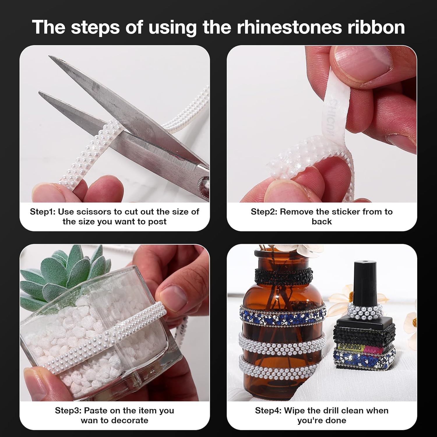 - Pearls Ribbon: 1 roll of self-adhesive pearls ribbon Sticker, approx 3 yards in length, 1cm/0.4inch in width. (PACKAGE CONTENT)