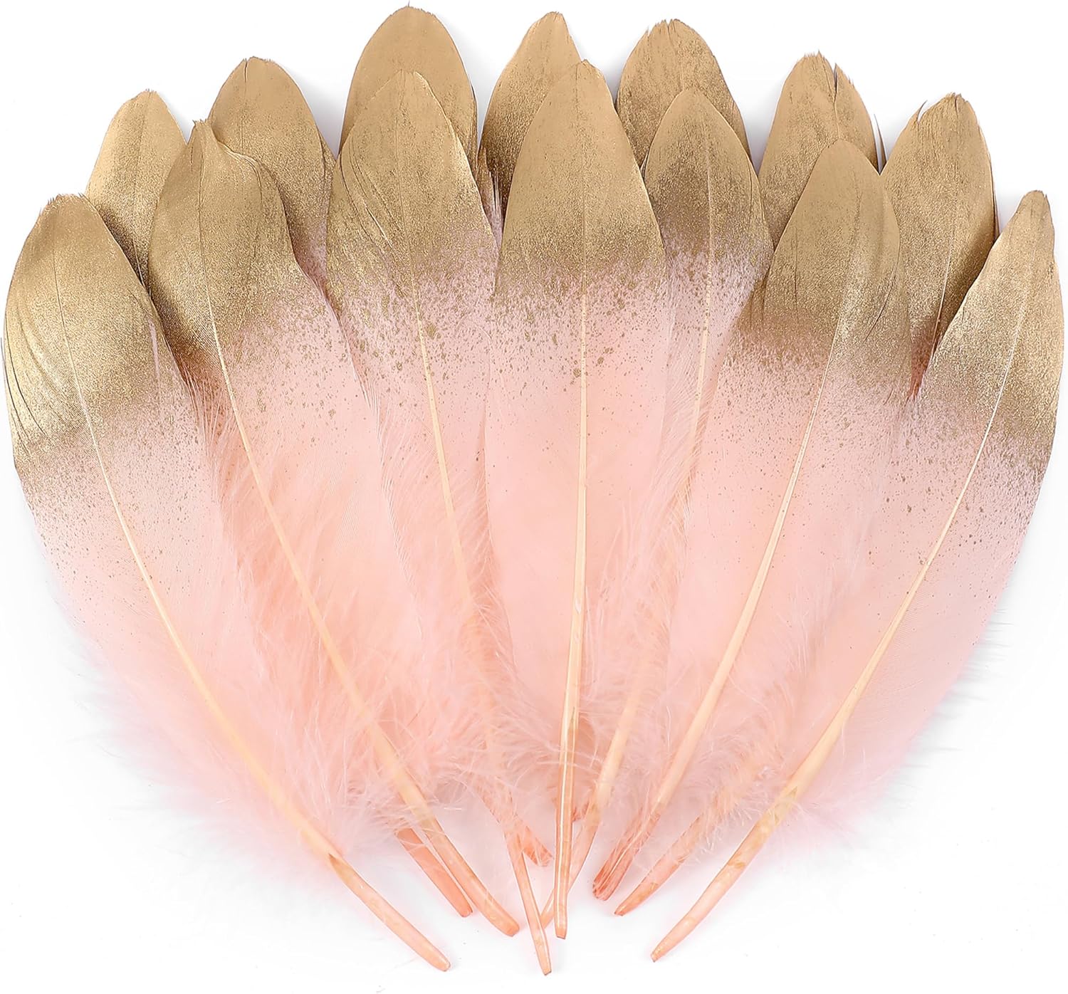 Larryhot Dipped Gold & Pink Goose Feathers for Crafts - 6-8 inch 60 pcs Natural Feathers for Wedding Party Decorations,DIY Crafts and Clothing Accessories (Gold & Pink)