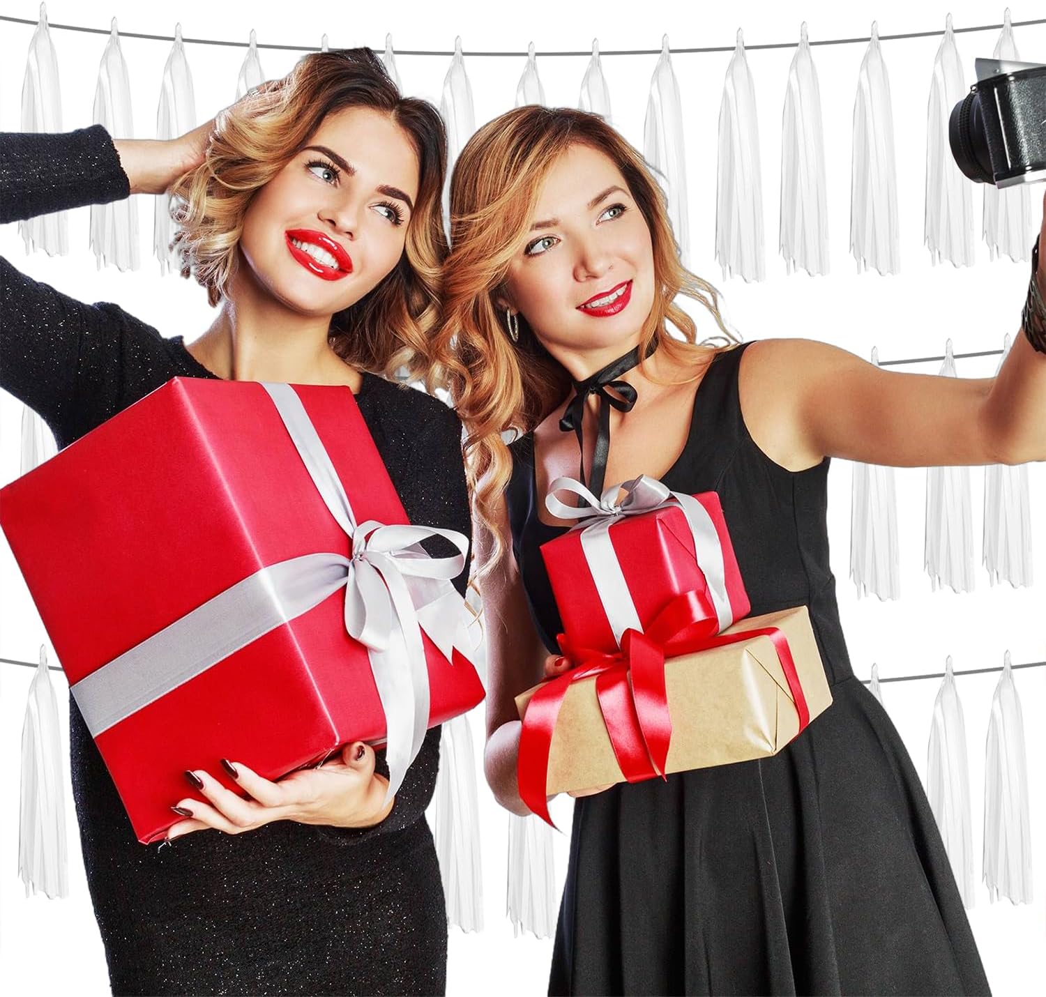3P White Foil Fringe Metallic Tassel Streamers Banner Tassel Garland for Parade Floats, Graduation, Wedding, Birthday, Halloween, Christmas, Bridal/Baby Shower Party Decorations