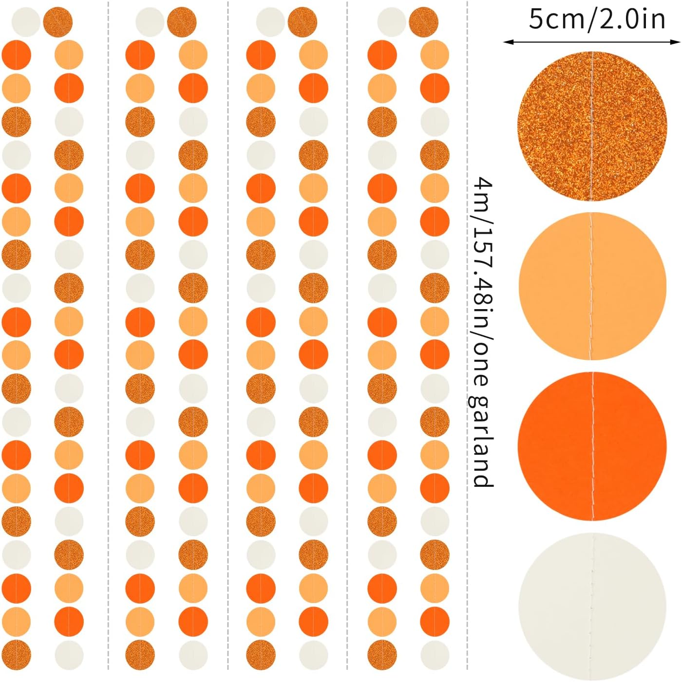 - PACKAGE CONTAINS: This set has four Orange-Beige circle paper garland,the length of each strand is 4 meters/13 feet, the total length is 16 meters/52 feet.The size is 2IN.