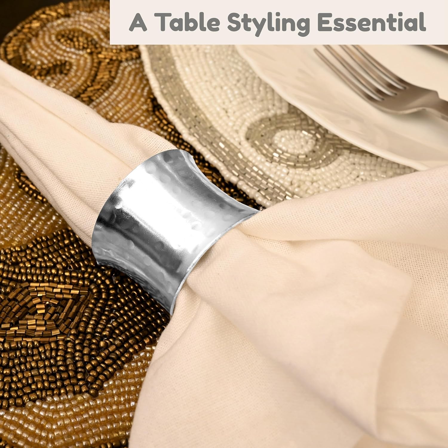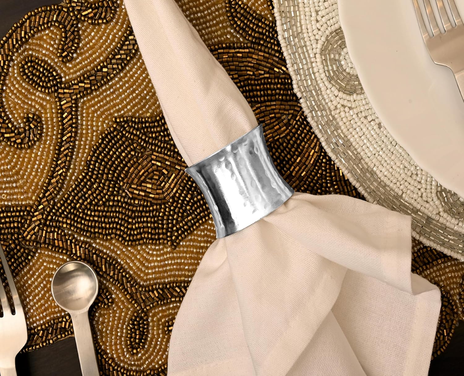 - ✅ HEAVY-DUTY NICKEL-PLATED METAL -HANDCRAFTED FINISH: Made from premium, rust-resistant alloy, each piece features a dual-tone hammered texture with a mirror-like nickel polish that adds both durability and elegance to every setting.