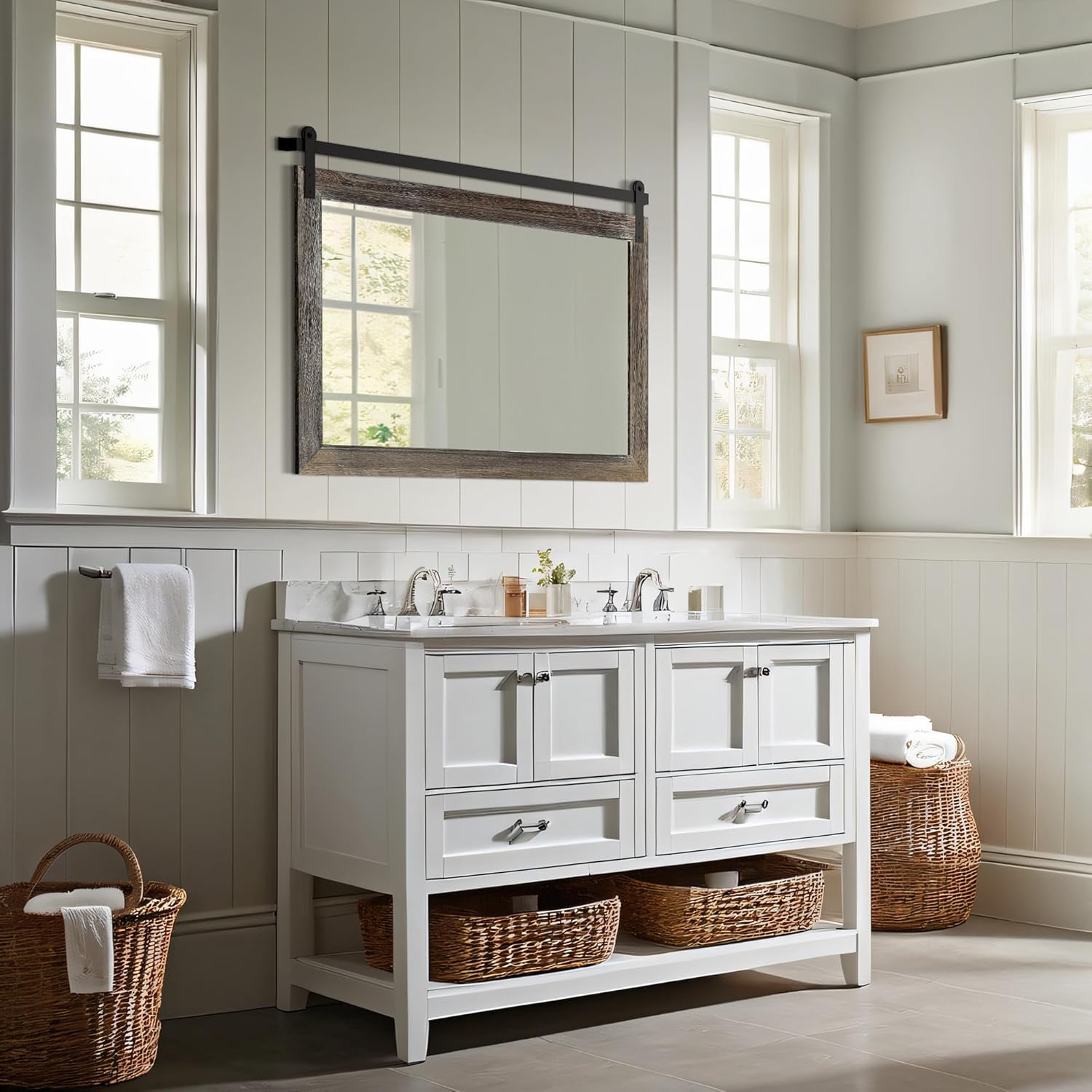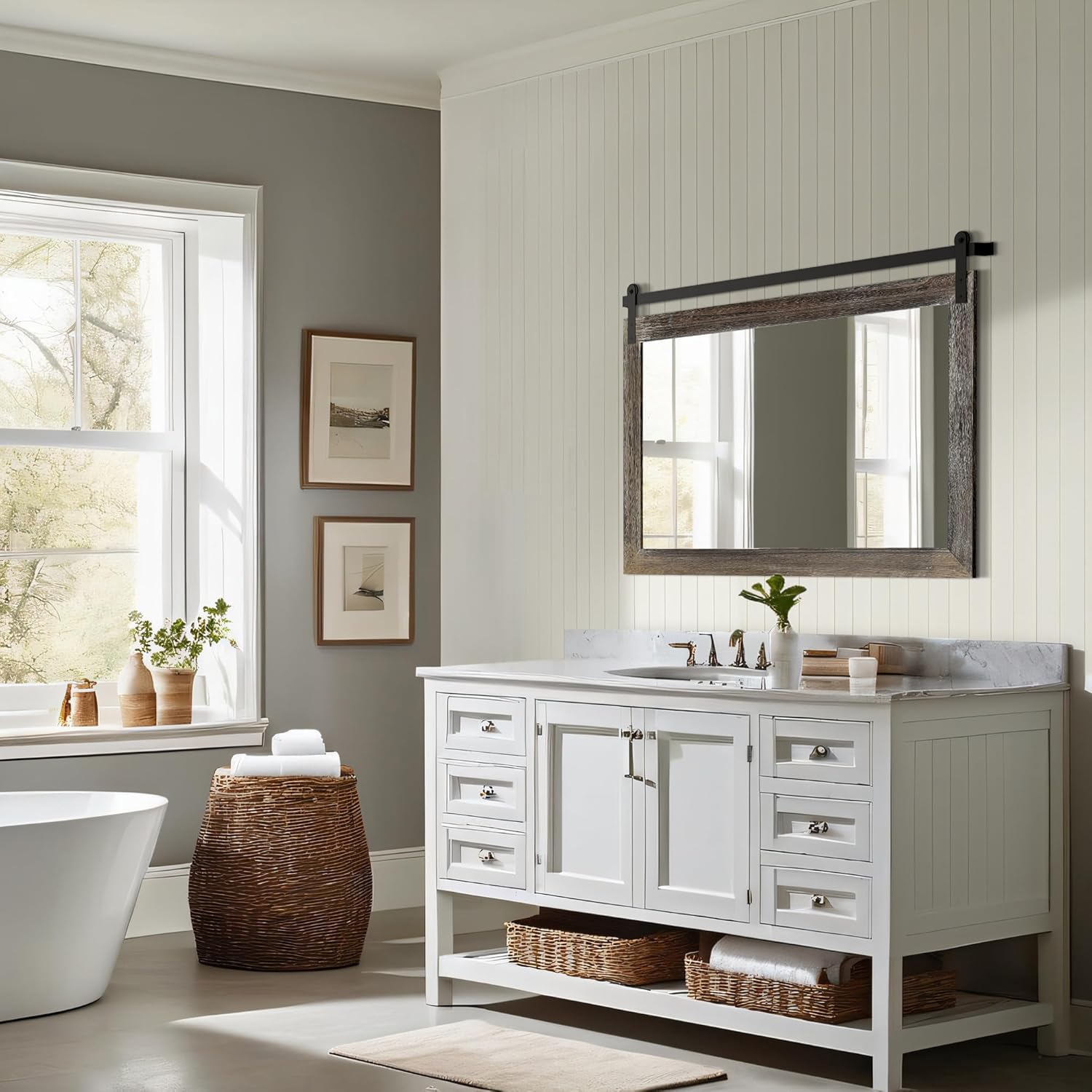 - USAGE OCCASIONS: This wall mirror is perfect for hanging in a large bathroom with enough space, on a sofa in a living room or over a fireplace as a complement to a farmhouse-themed space. If you are planning to remodel your room, then it would be a good choice