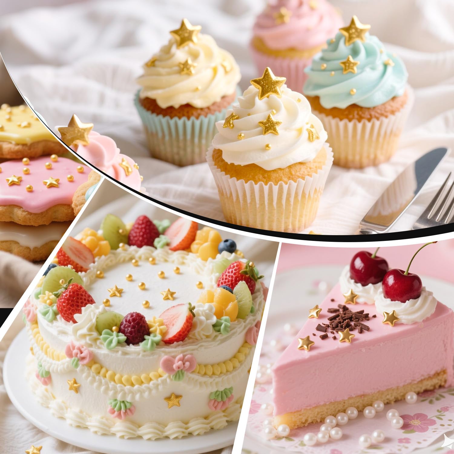 - The Gold Star Sprinkles can add a festive atmosphere to holiday desserts and are suitable for weddings, birthdays, graduation ceremonies, Valentine's Day, Easter, Independence Day and other festivals.