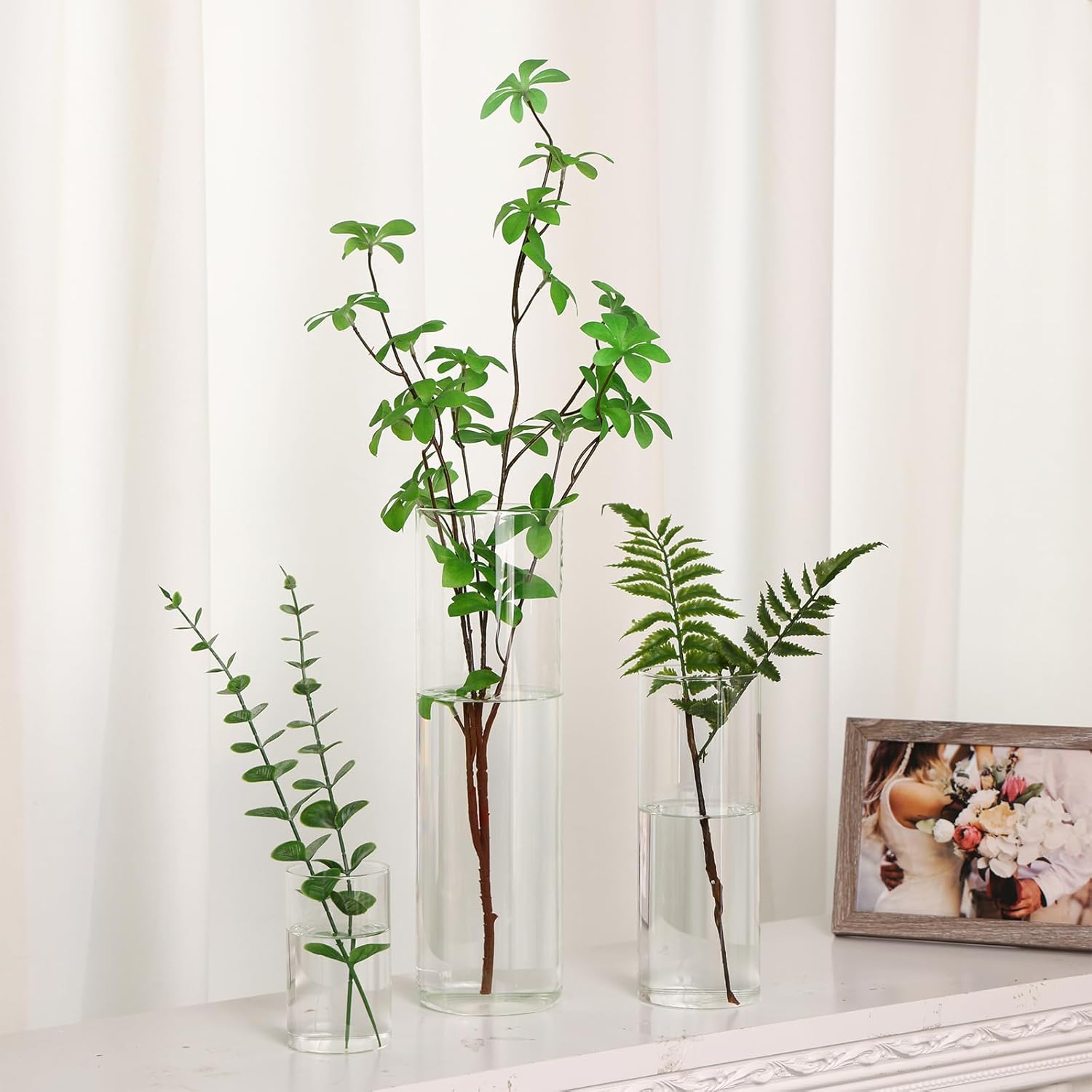 - PRODUCT COMPOSITION: 18 pack clear glass cylinder vases which can be used in party event, home and office decor. The glass cylinder vases come in 3 sizes in secure packaging, six of each size.