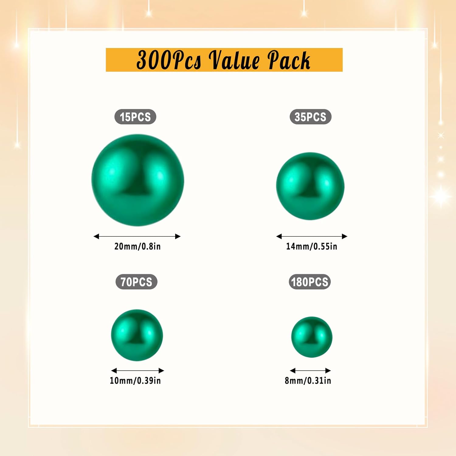 300Pcs Pearl Vase Filler, Green No Hole Faux Pearl Beads for Centerpieces Vases, Candle Centerpieces, Wedding Birthday Party Home Decor 8/10/14/20mm