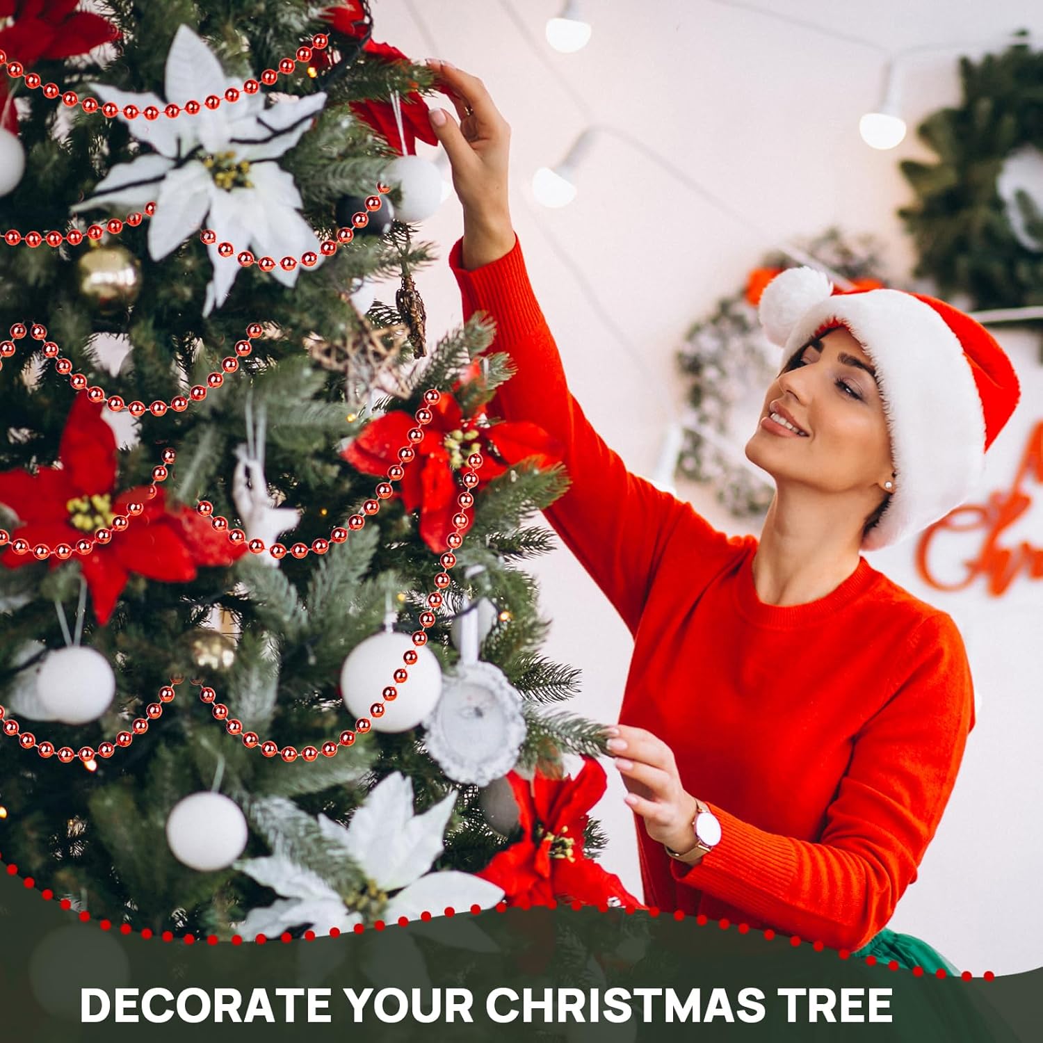 Red 8MM Faux Pearl Garland, 33 Feet Roll Strand Wedding Party Decoration, Christmas Tree Decorations