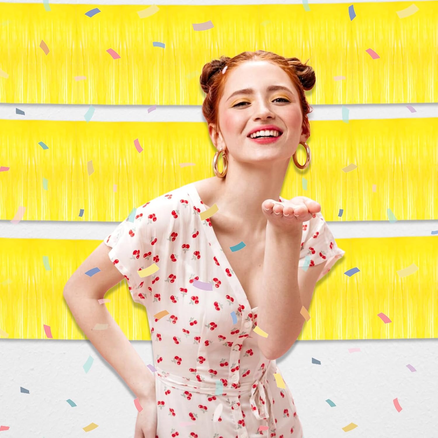 6 Pack 10 Feet Yellow Foil Fringe Garland Metallic Tinsel Streamers Banner Wall Hanging Curtain Backdrop for Parade Floats, Birthday, Graduate, Mother's Day, Wedding Party Decoration