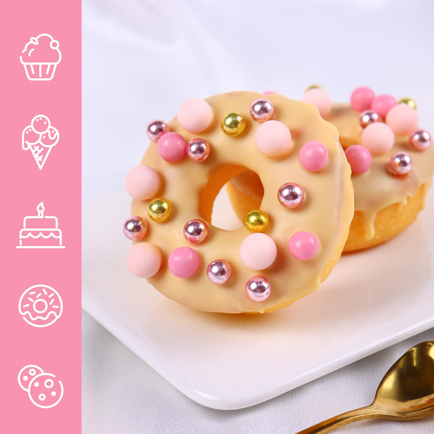 - Explore Our World of Sprinkles! - These rose gold and pink sugar pearl sprinkles can add extra fun to your cakes, cupcakes or other desserts, helping them become irresistible masterpieces.