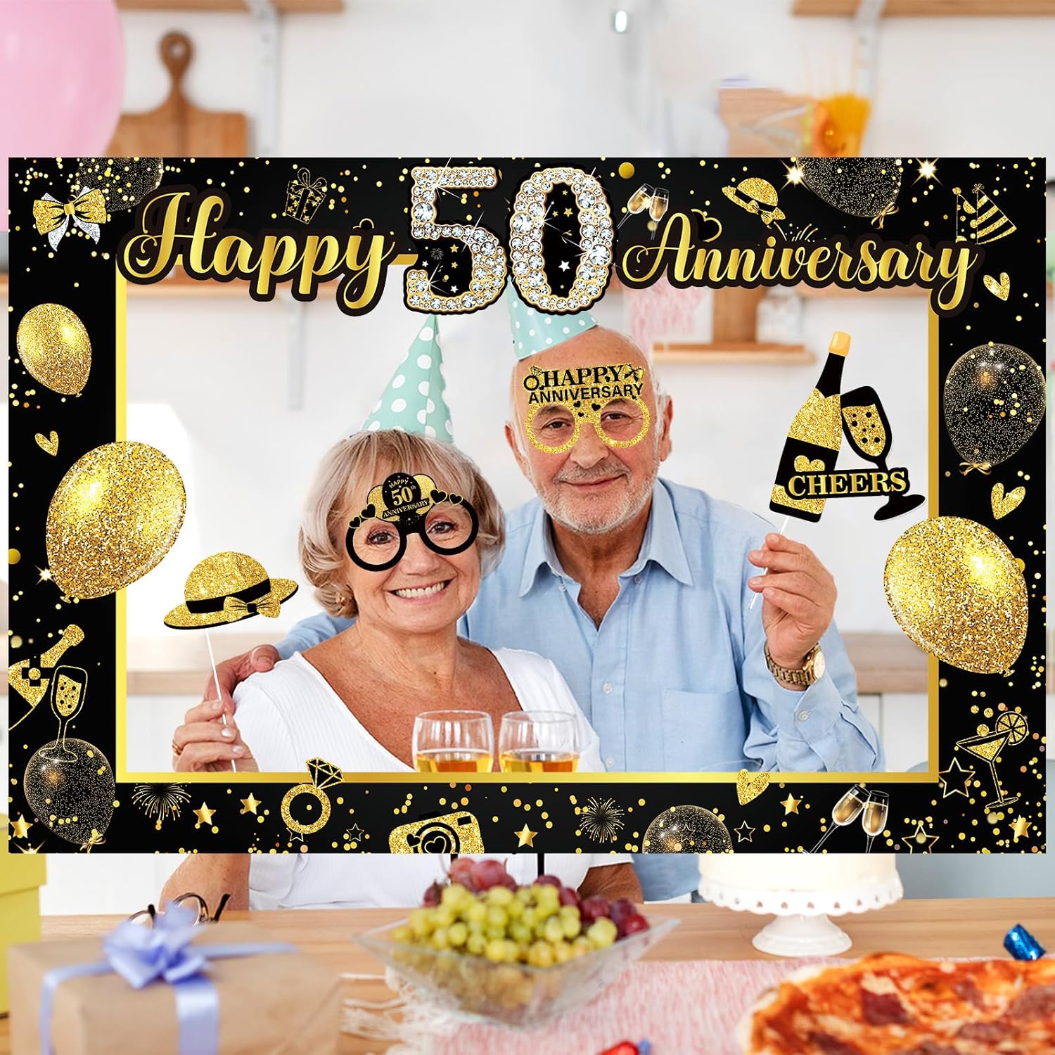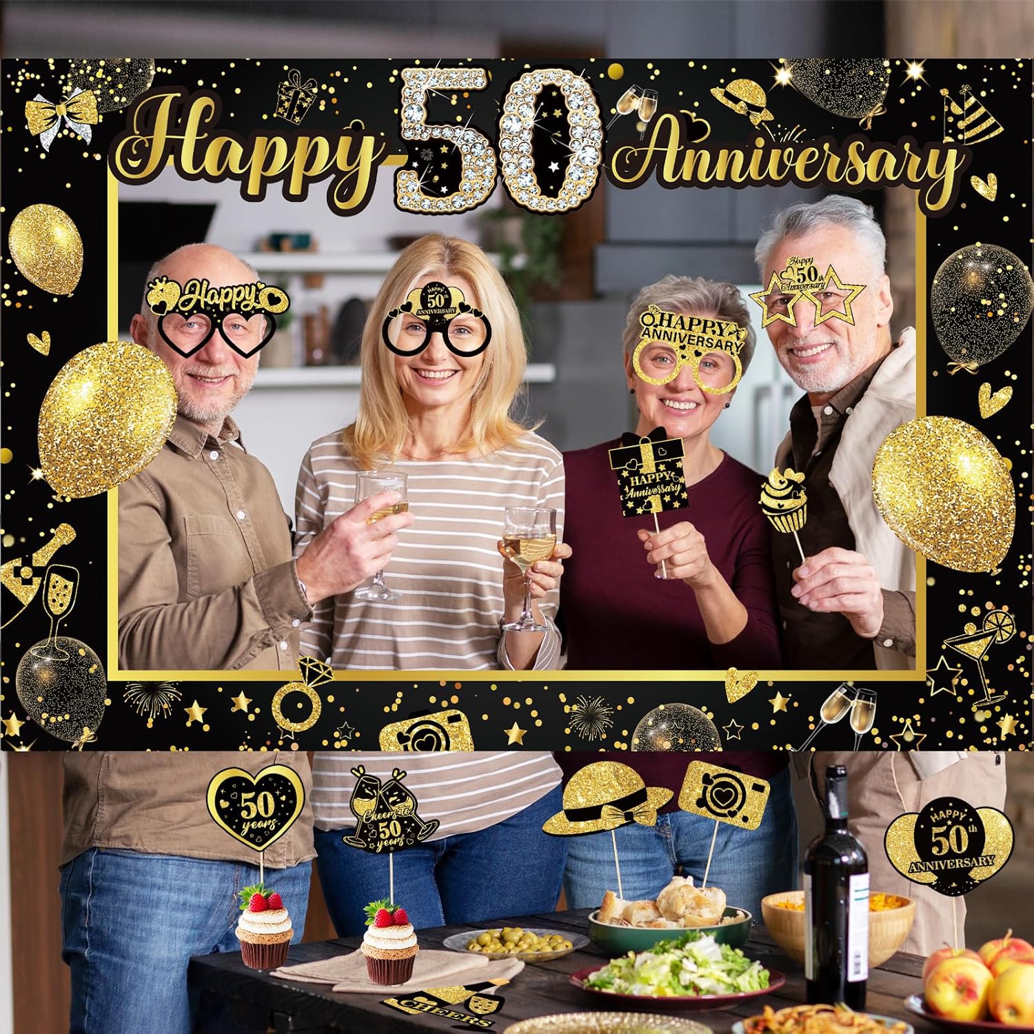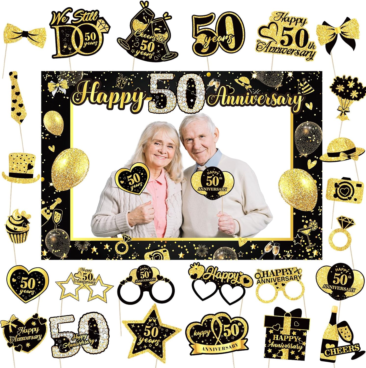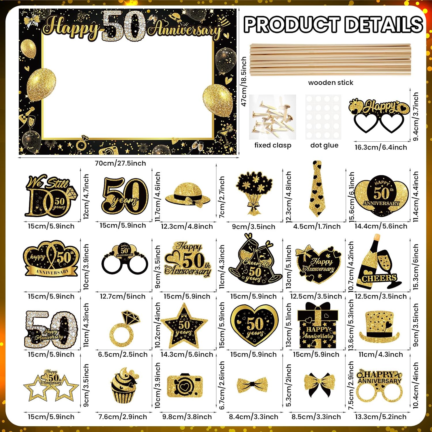 - Package Includes: Our happy 50th anniversary decorations include a 50th anniversary photo frame and 25 different shapes and sizes of 50th anniversary photo booth props, we also have wooden sticks, and dot glue to help you assemble these 50th anniversary photo props to maximize your needs so that you can have wonderful 50th anniversary memories