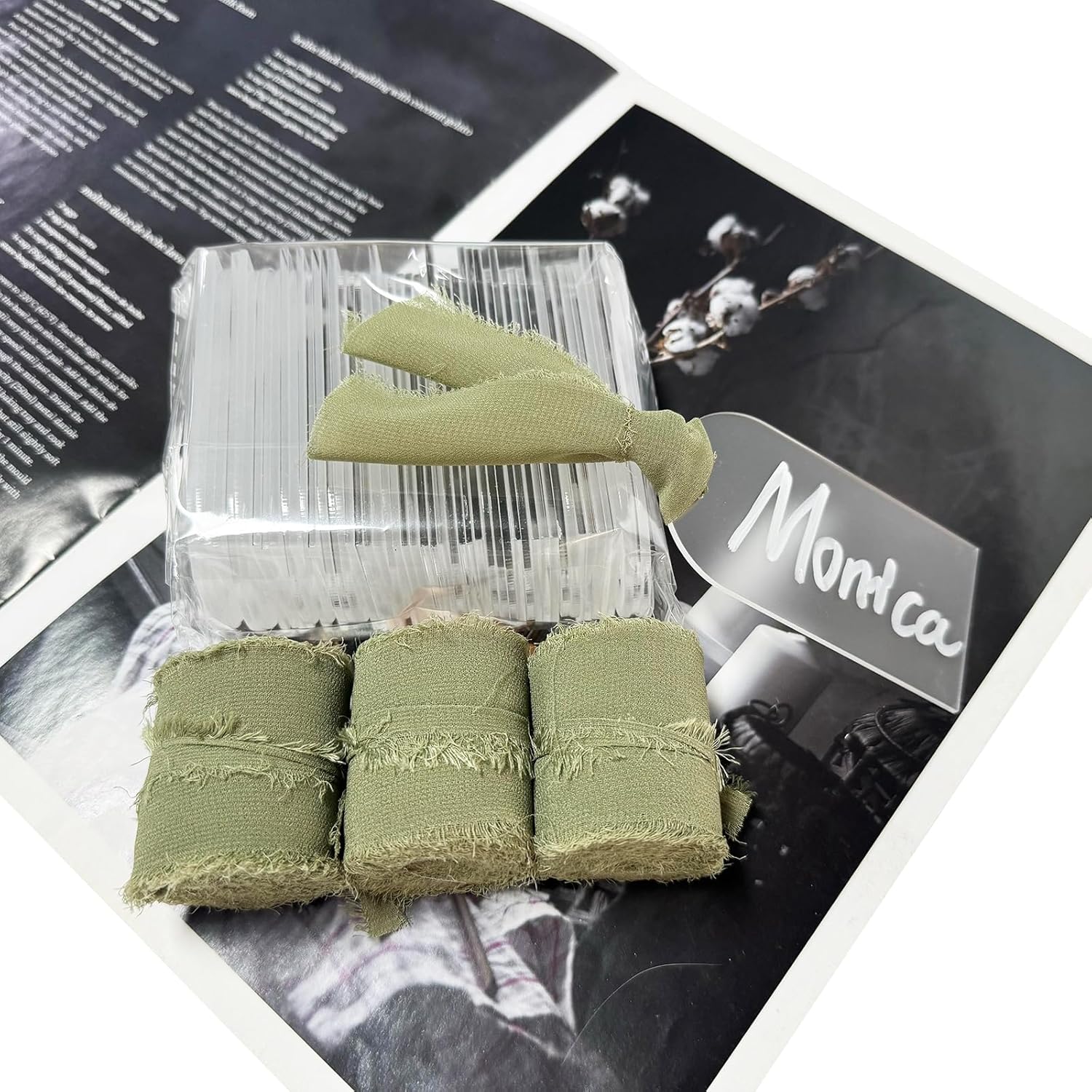 50Pcs Acrylic Place Card for Wedding Frosting Acrylic DIY Table Seating Cards Wedding Supplies with Green Ribbon