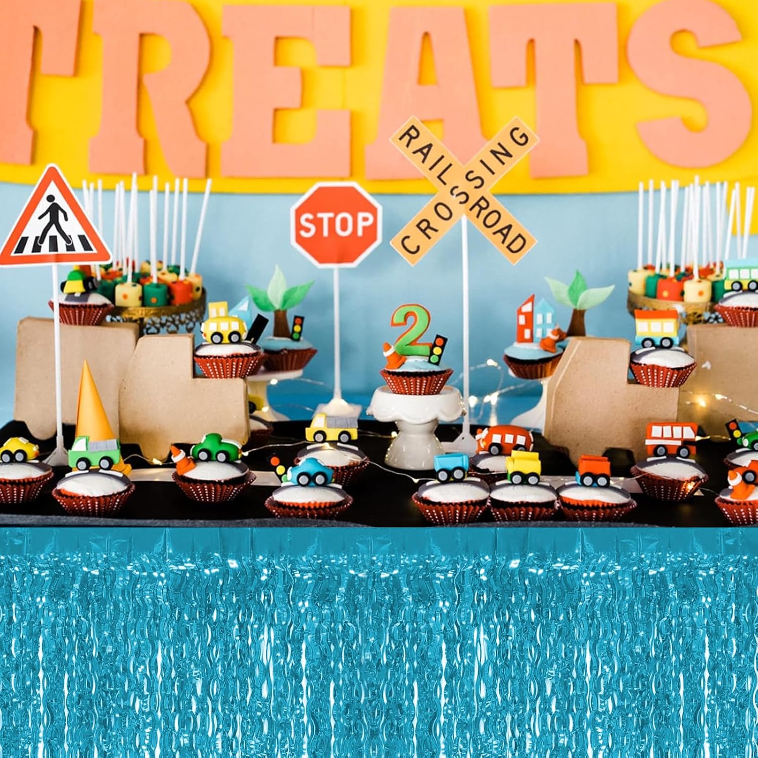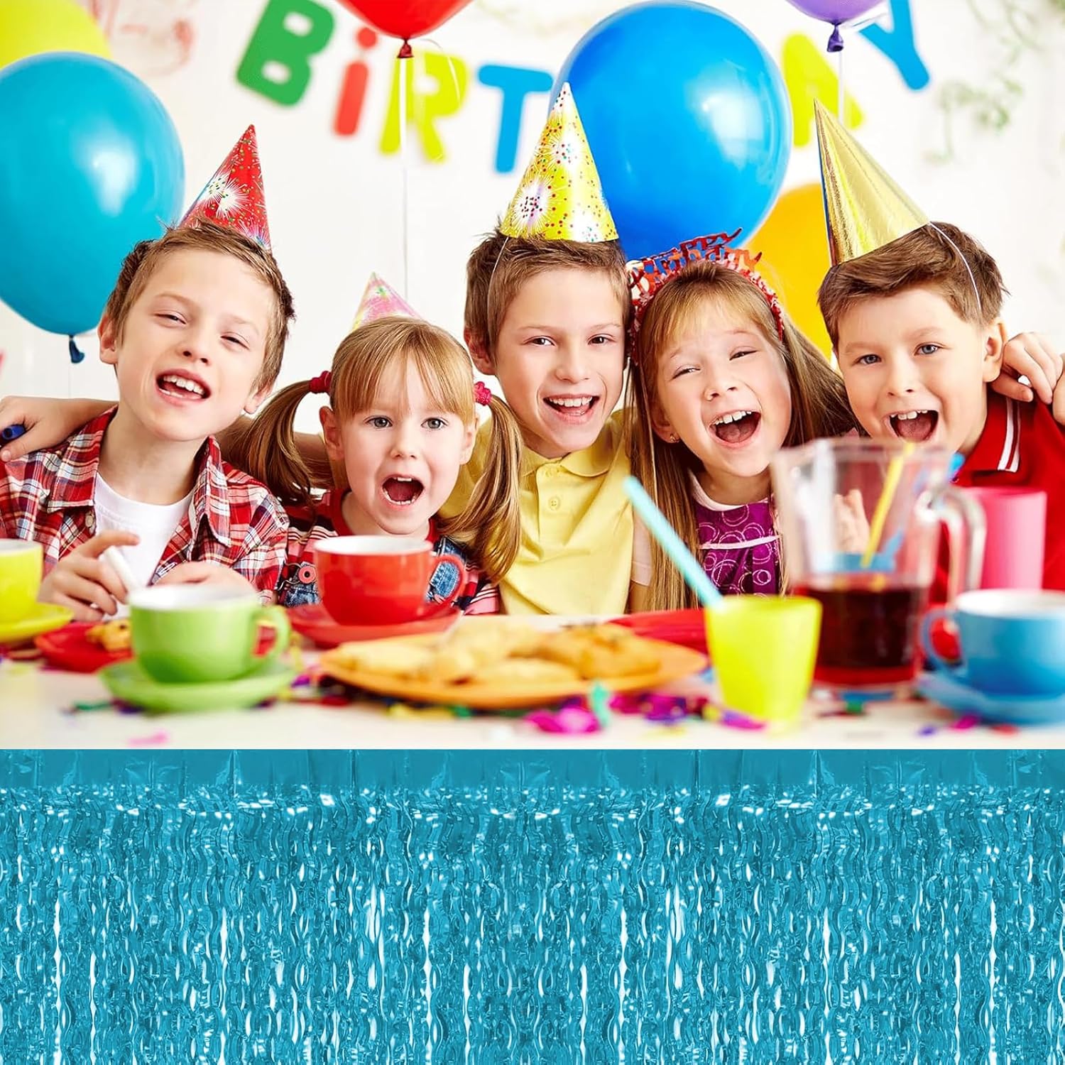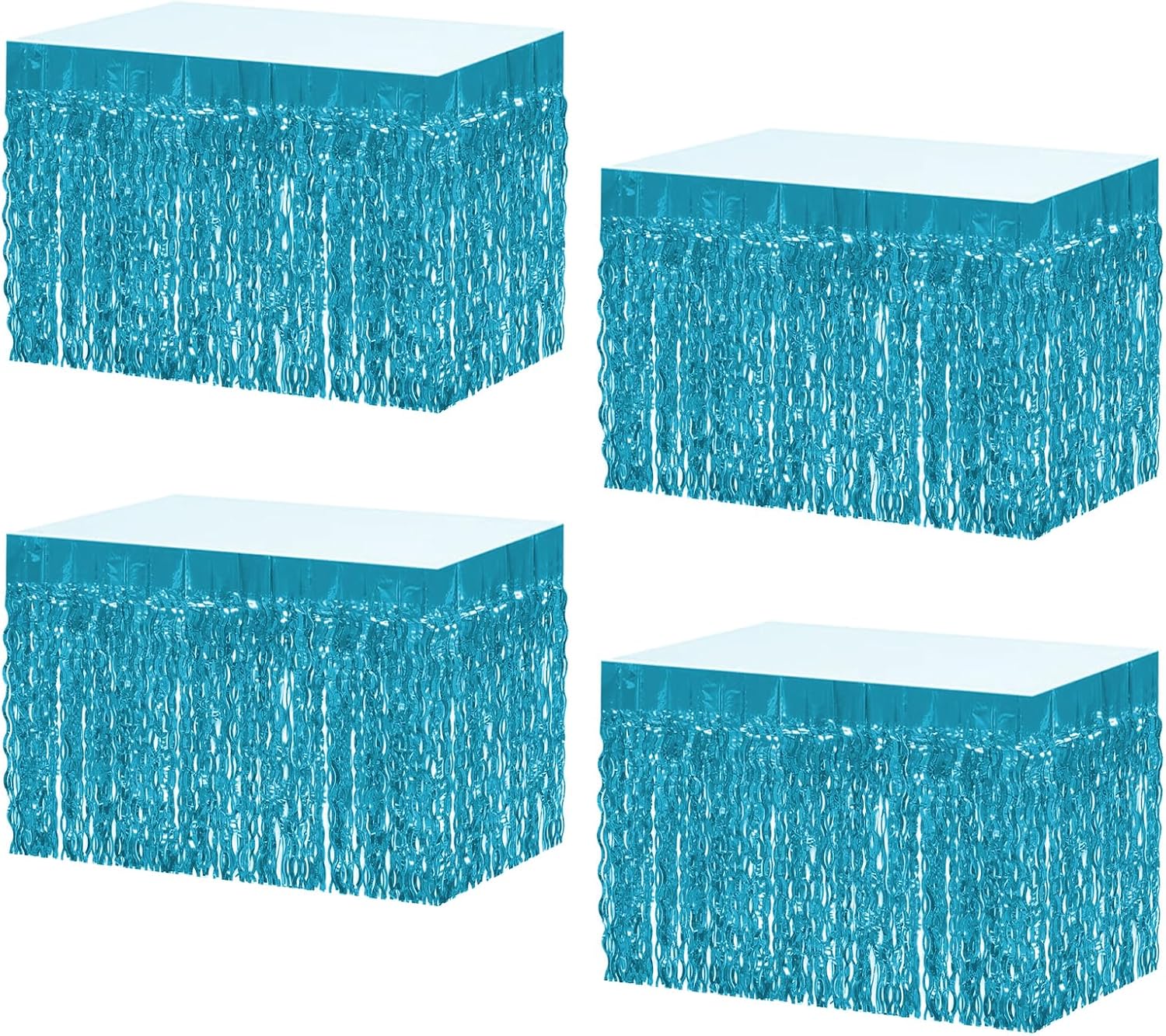 4P Wavy Metallic Tinsel Foil Fringe Table Skirts for Rectangle Tables Backdrop Garland Curtains for Parade Floats Wedding Birthday Parties Decoration Graduation 2025 Christmas (Lake Blue)