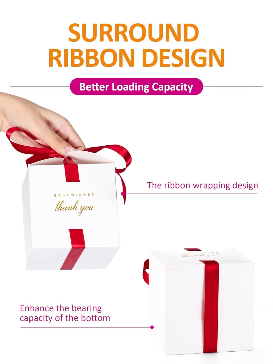 - Small Gift Box with Ribbon: There are 400 white gift boxes and red ribbon, and you can cut the length you need to wrap your gift boxe.Our ribbon width is 16mm, and the size is suitable for tie a bow.This red ribbon is not only unique and beautiful, but also can hold the bottom of the gift box from sagging, enhancing the load-bearing capacity of the bottom!
