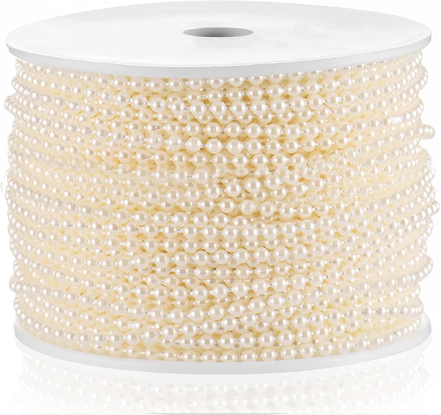 Craft String Pearls 3MM Pearl Bead, 99 Feet Ivory Faux Pearl Garland Spool Roll Strand Wedding Party Decoration