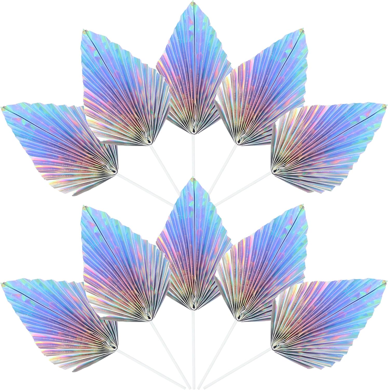 Ephlyn 6Pcs Paper Palm Leaves Fan Cake Toppers Palm Leaf Fan Cake Picks Craft DIY Fan Cupcake Toppers Palm Spear Leaves Cake Decorations for Baby Shower Wedding Birthday Party Decor Supplies Colorful