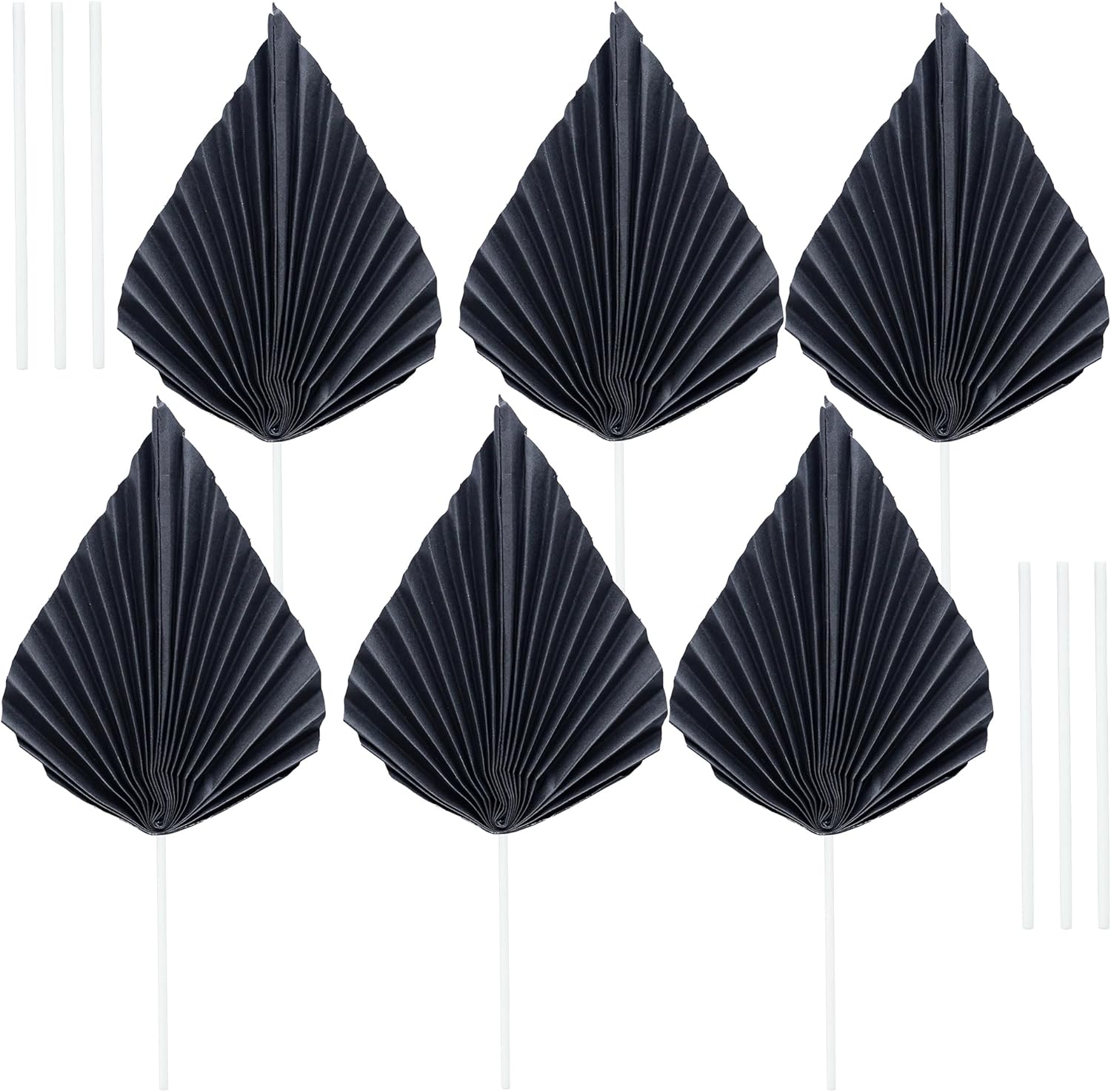 Ephlyn 6Pcs Paper Palm Fan Cake Topper Palm Leaf Fan Cake Pick for DIY Cake Bakeware Baby Shower Wedding Bridal Shower Birthday Anniversary Party Cake Decorations Supplies Black