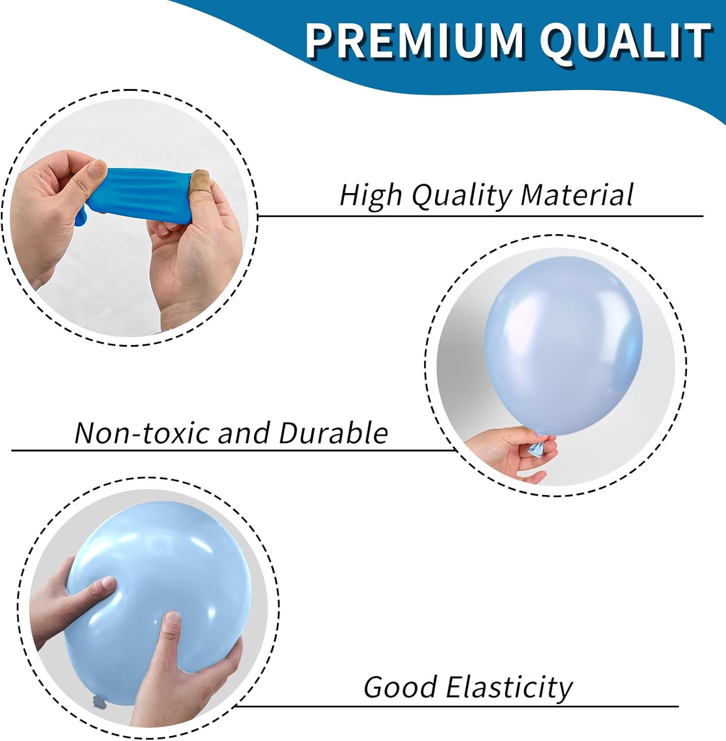 - Diversified Scenarios: Elevate your celebrations with our pearl blue and white balloons collection, designed to bring joy and vibrancy to any event. Whether you’re planning birthday, wedding, store opening, festive holiday celebrations, or company event, our balloons are perfect for every occasion.With a range of colors and styles, they enhance party decorations, creating an unforgettable atmosphere.