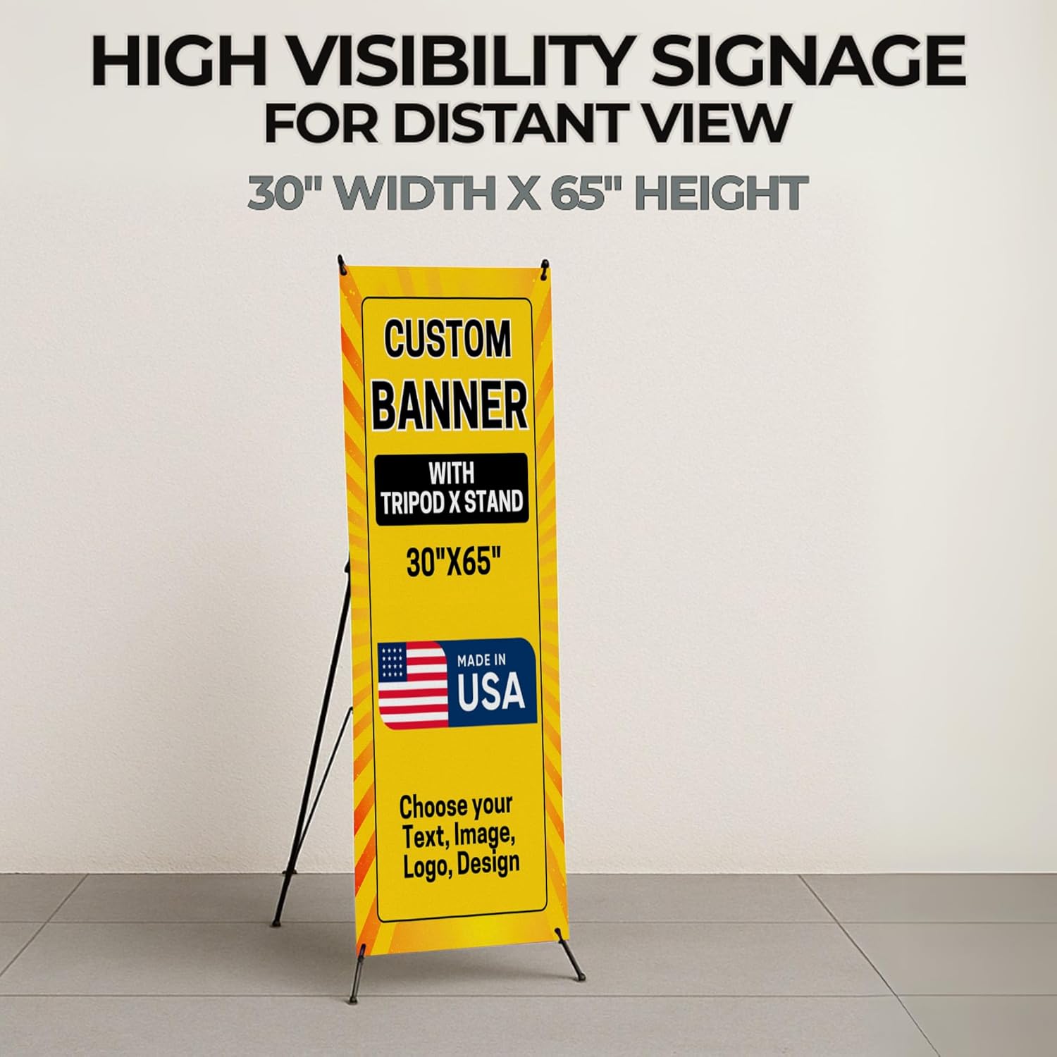 Custom Banner With X Stand By Dreamcontroller(30" X 65") | Personalized X Banner Stand For Advertising, Stores, Tradeshow, Restaurant, Event, Birthday & Party | Made In Usa | Fast Delivery | Hd Print
