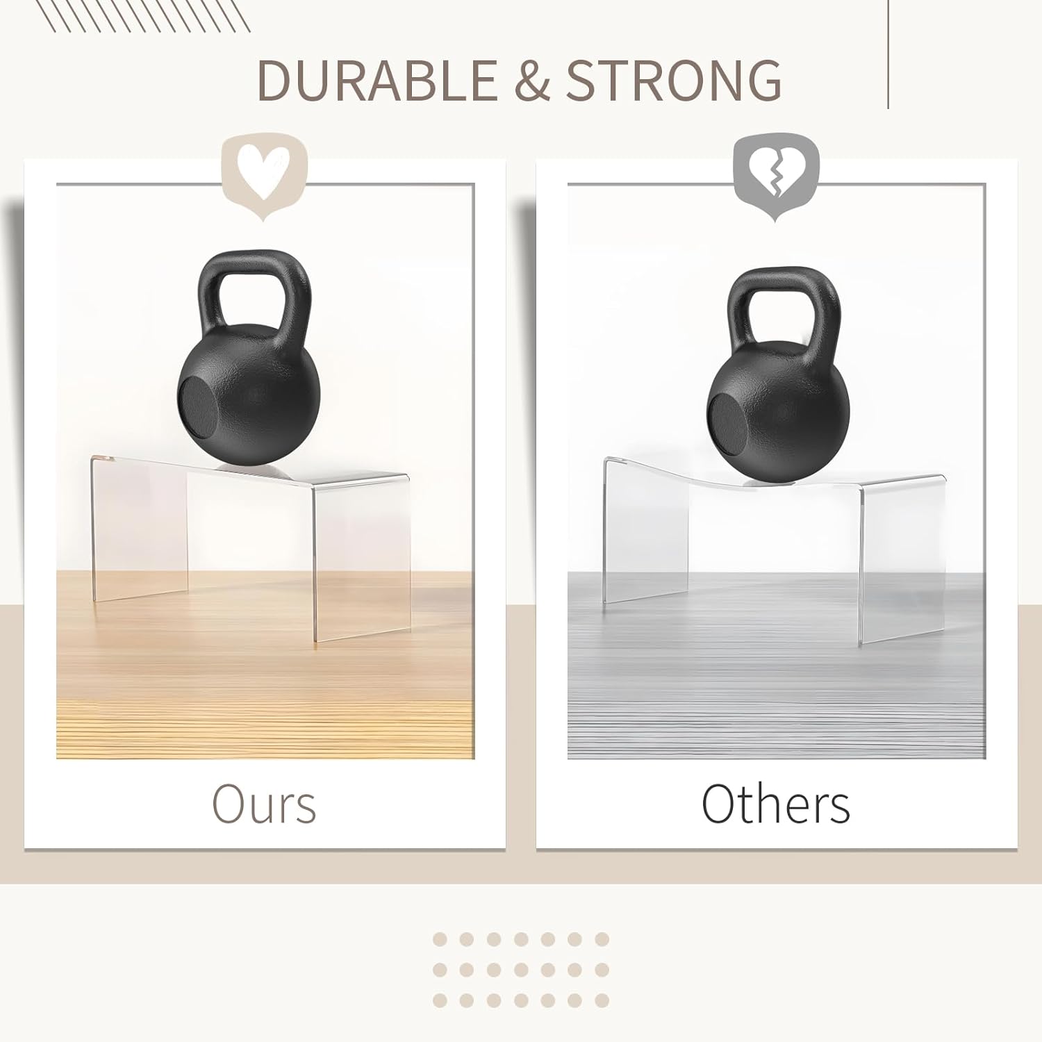 - STURDY MATERIAL&SIMPLE DESIGN: Made of 4mm high quality acrylic material, the acrylic risers display stands are more sturdy and durable and designed for a long service life.With the clear appearance that will add a sophisticated and professional touch to any display.