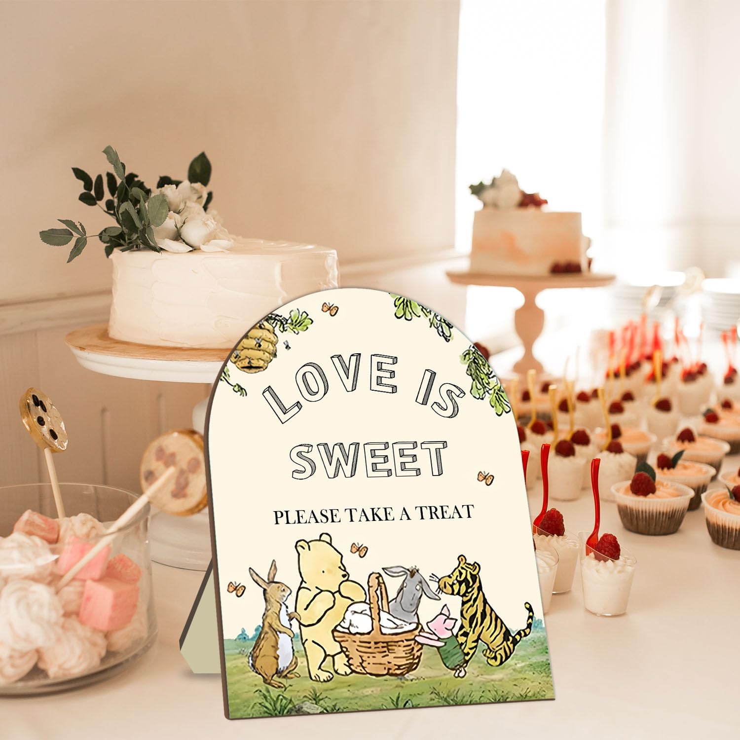 Classic Pooh Love is Sweet Please Take A Treat Sign, Winnie Decor Bridal Shower Sign, Love is Sweet Sign for Wedding Shower, Baby Shower Bridal Shower Decor Supplies 9 * 11IN