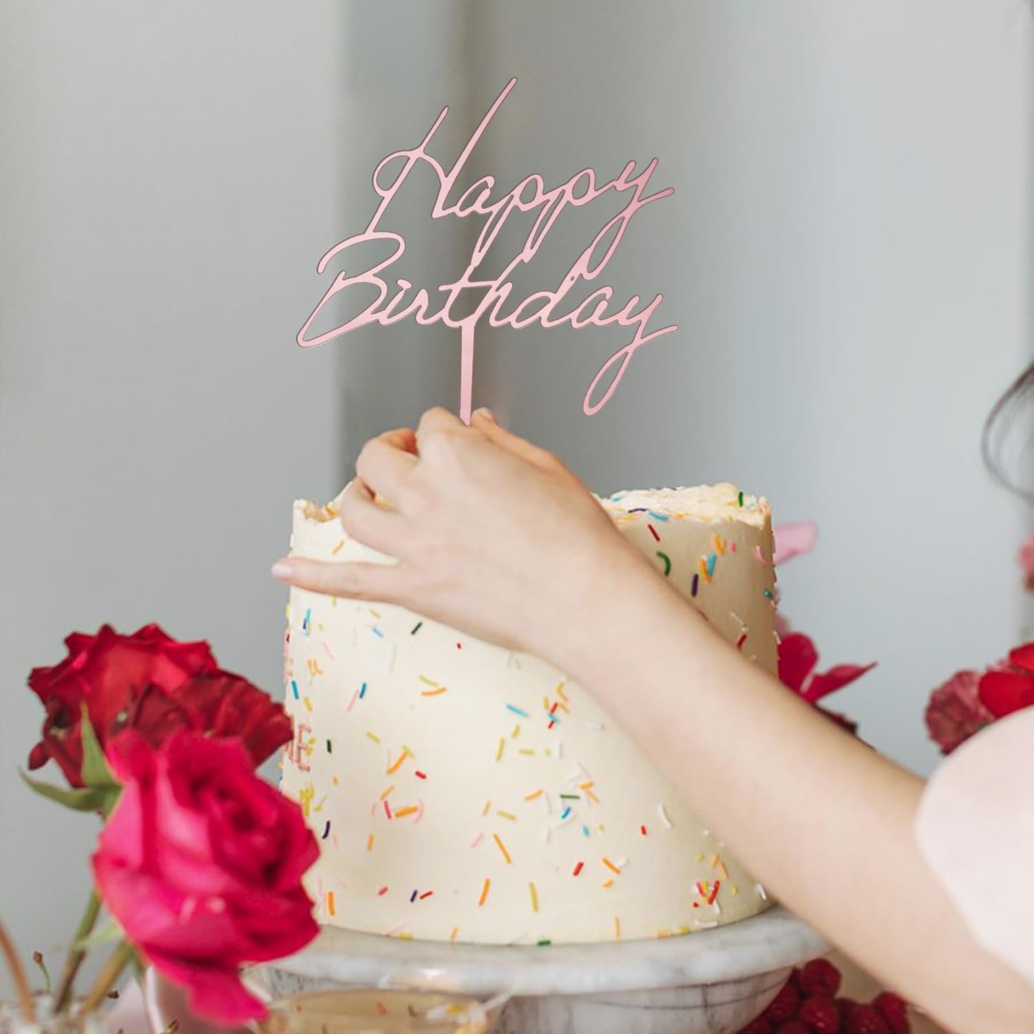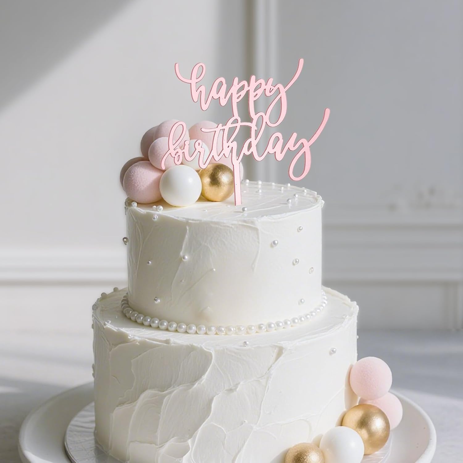 6-Pack Acrylic Birthday Cake Toppers, Minimalist Pink Happy Birthday Sign for Cake Decorations