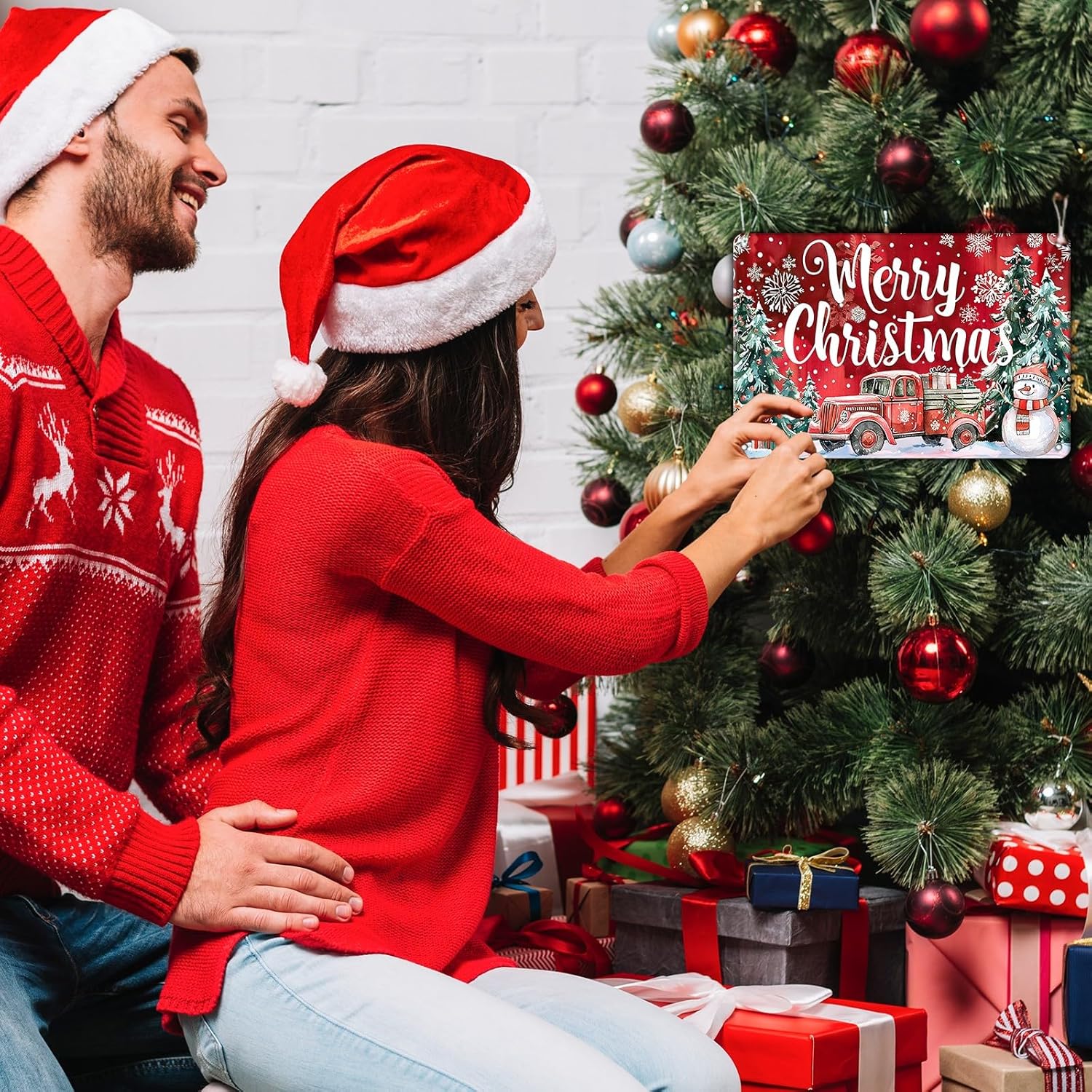 - Christmas Truck Metal Sign Easy To Install : The Vintage Merry Christmas Tin Sign has Rolled Edges and Rounded Corners to Avoid Injury, Plus It Comes With 4 Pre-Drilled Holes, Requiring No Adhesive or Special Equipment. This ​​Snowman Metal Sign is Designed to Withstand Outdoor and Indoor Conditions, So You Can Display It Anywhere You Like.