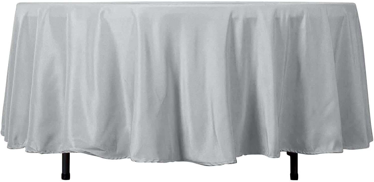 Efavormart Round Tablecloth, 108 Inch Stain & Wrinkle Resistant Washable Table Cloth, Decorative Polyester Fabric Table Cover for Banquet, Wedding, Dining- Silver