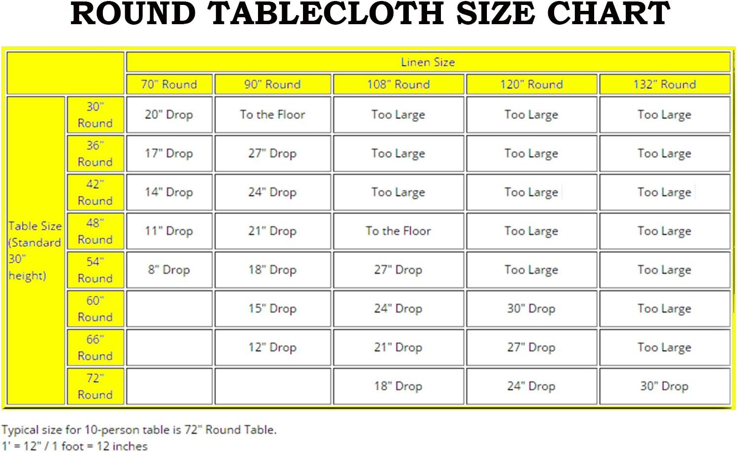 - Material: Premium Polyester Wrinkle Resistant, Stain resistant. Approximate Measurements: 132" diameter wide How to Care: Warm water wash. Low temp dry. Can be reused again and again, easily over 100 times. Seamless, 1pc design.