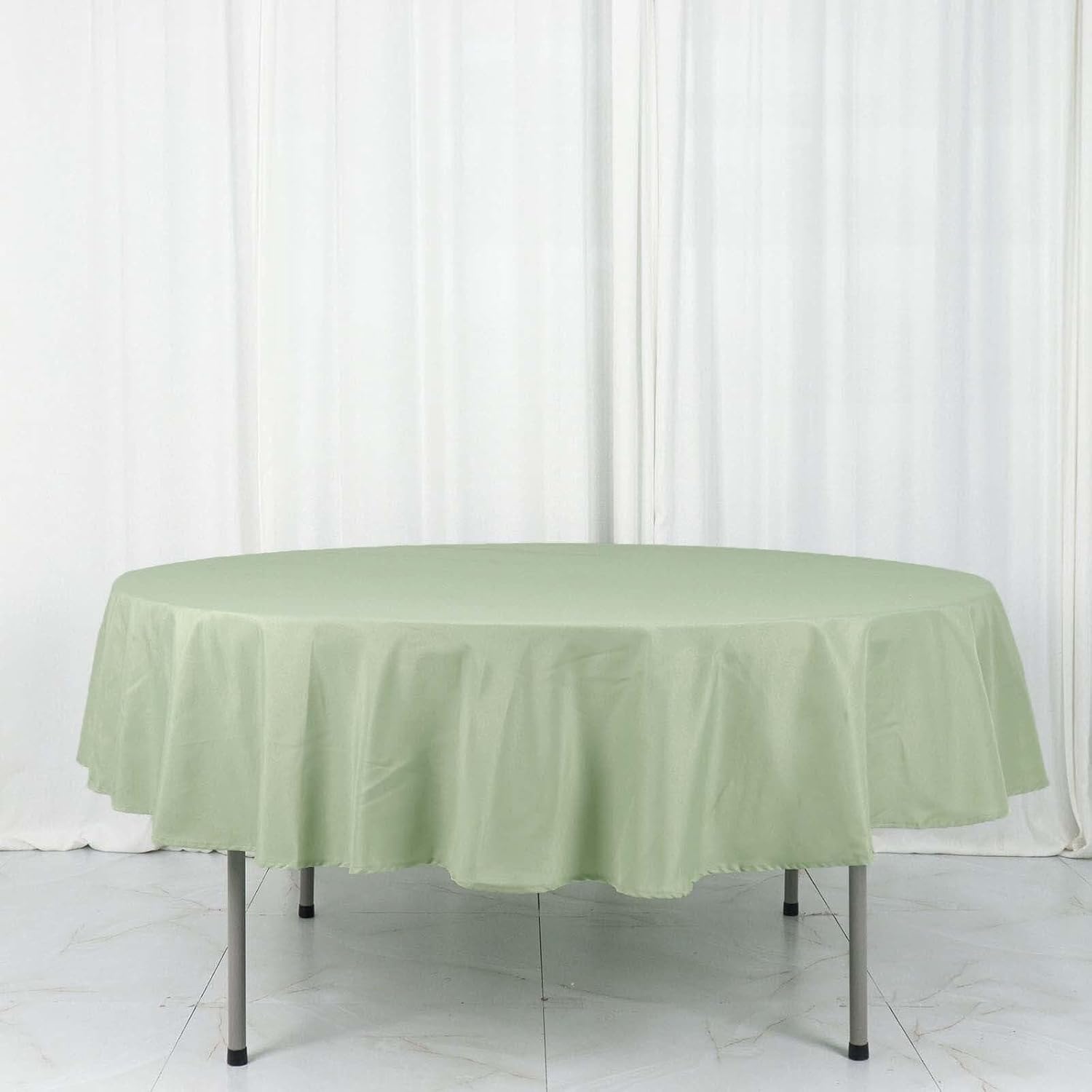 - Quantity: 1 Tablecloth Material: 100% Polyester Color: Sage Green Size: 90" Round 1 piece, seamless design Stain & Wrinkle Resistant, Machine Washable Hemmed edges for an exquisite look.