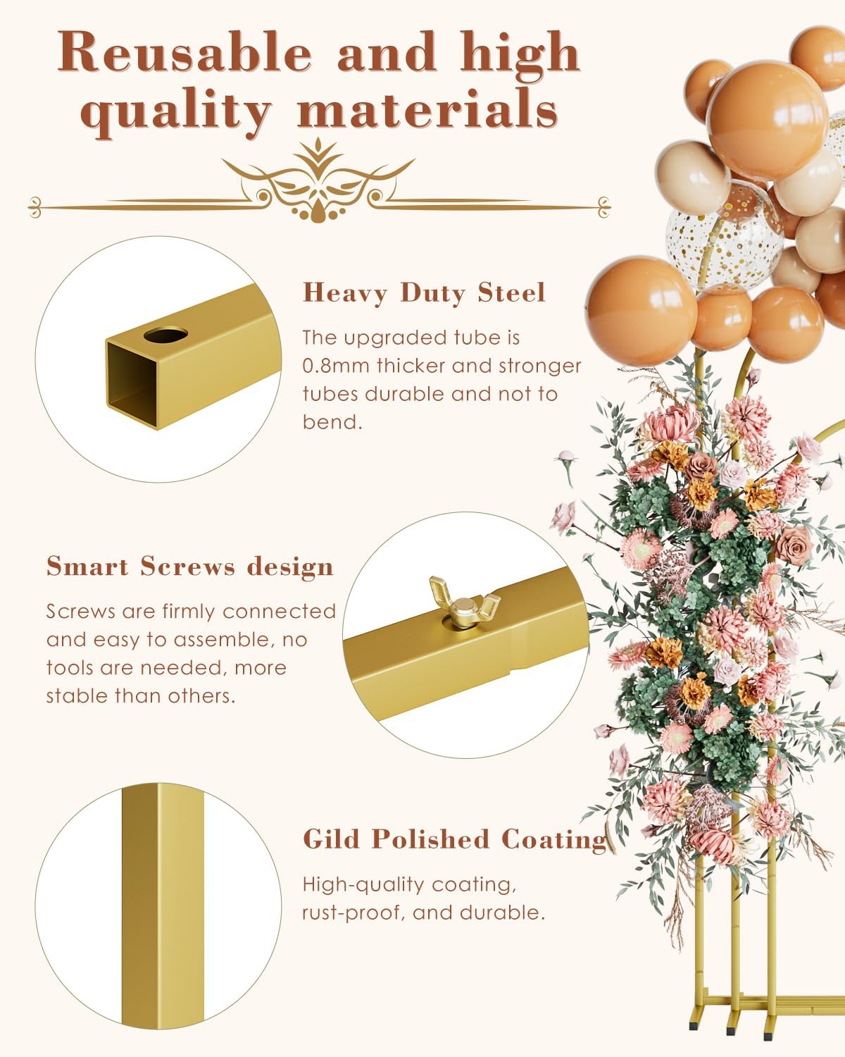 - Easy to Assemble: Our metal wedding arch stands, including a wedding arch frame suitable for balloon arch backdrops, are made of sturdy and lightweight square steel pipes with a bright gold color. With a higher bearing capacity and easy assembly, the arch frames can be quickly put together with screws in minutes. The metal arch backdrop stands are designed for easy disassembly by a single person, making setup convenient and hassle-free for any event.