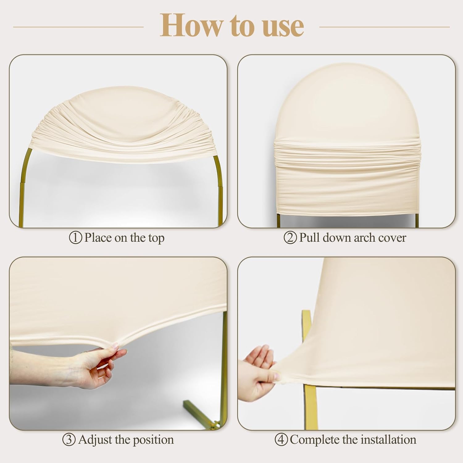 Ledido Wedding Arch Backdrop Cover 7.2FT Arch Covers Fitted Stretchy Spandex Round Top Stand Backdrop Cover for Wedding Banquet Ceremony Birthday Party Baby Shower Event Decoration,Beige