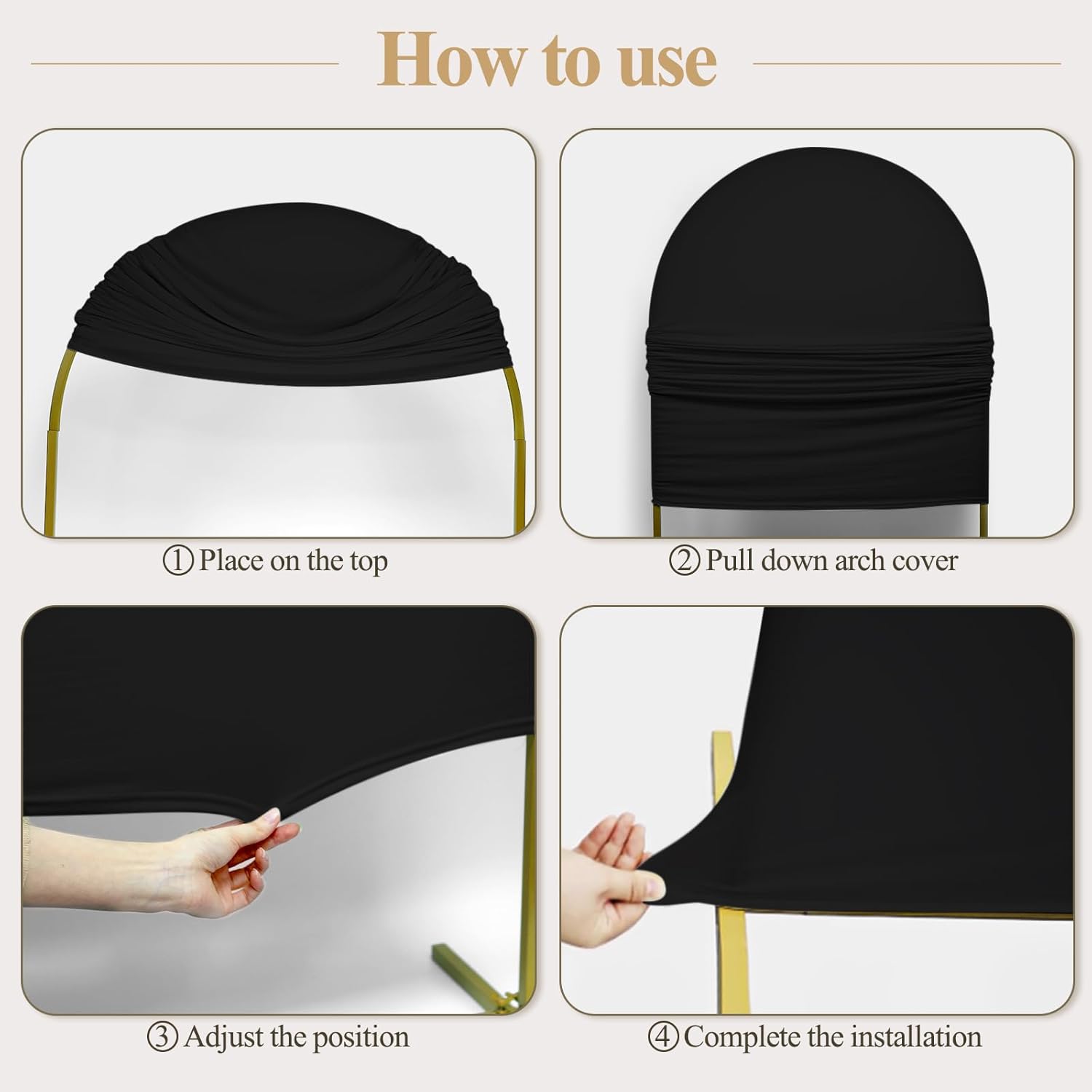 Ledido Wedding Arch Backdrop Cover 7.2FT Arch Covers Fitted Stretchy Spandex Round Top Stand Backdrop Cover for Wedding Banquet Ceremony Birthday Party Baby Shower Event Decoration,Black