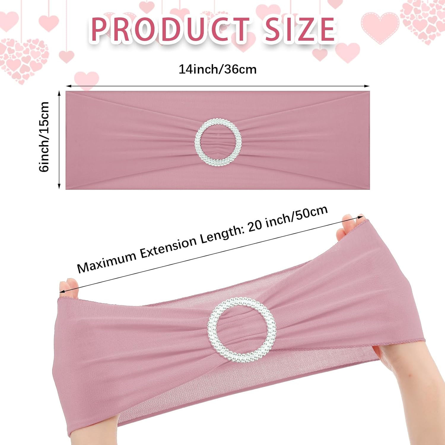 CHENGU 150 Pieces Spandex Stretch Chair Sashes Bows Elastic Chair Cover Bands Ties with Buckle Slider for Wedding Party Reception Events Universal Ceremony Banquet Decorations(Dusty Pink)