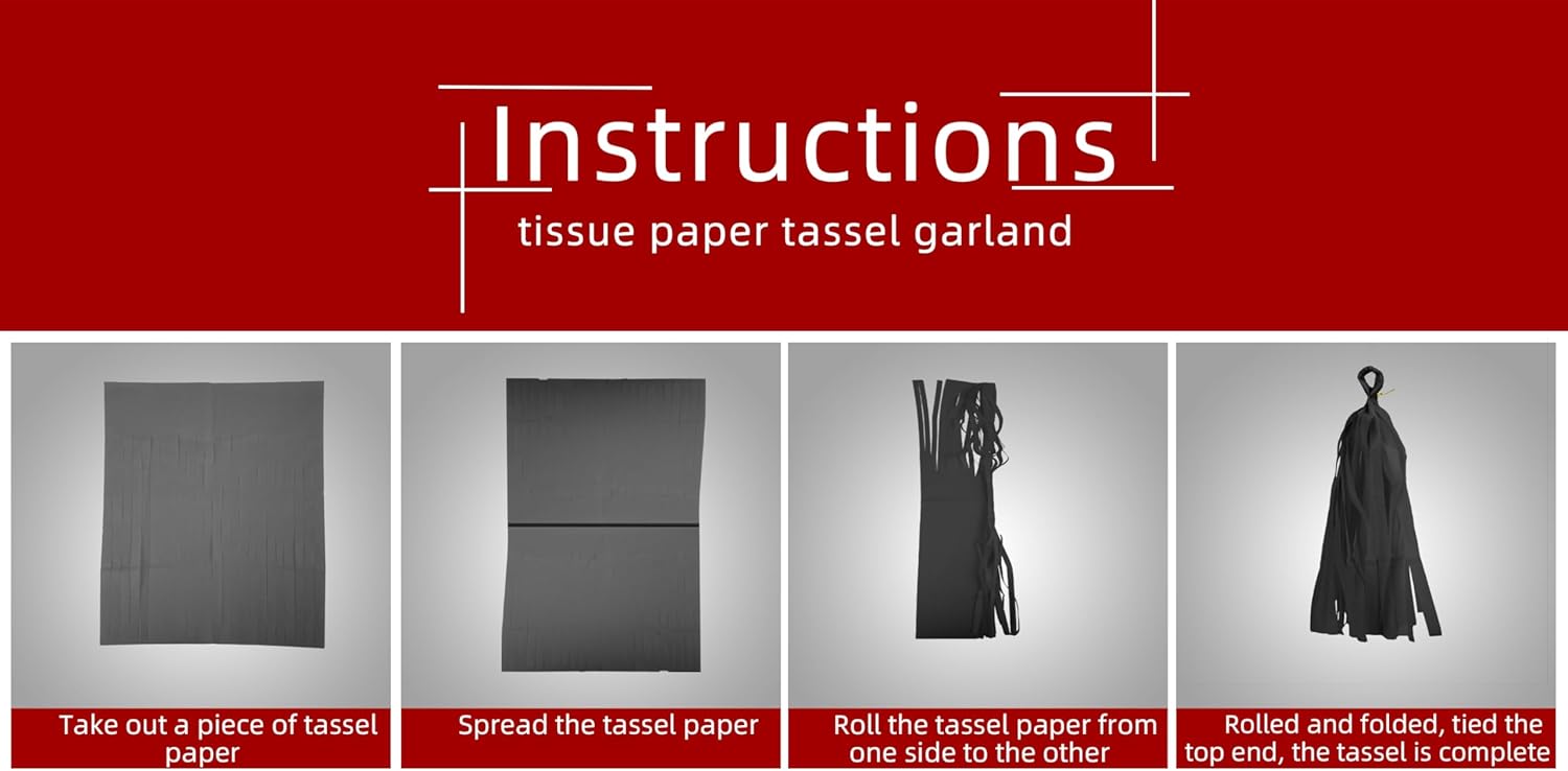 - 【Package Including】The decorations kit include 15pcs tissue paper tassel garland in 3 colors,red white and black,each tassel is approx 13.8inches in length