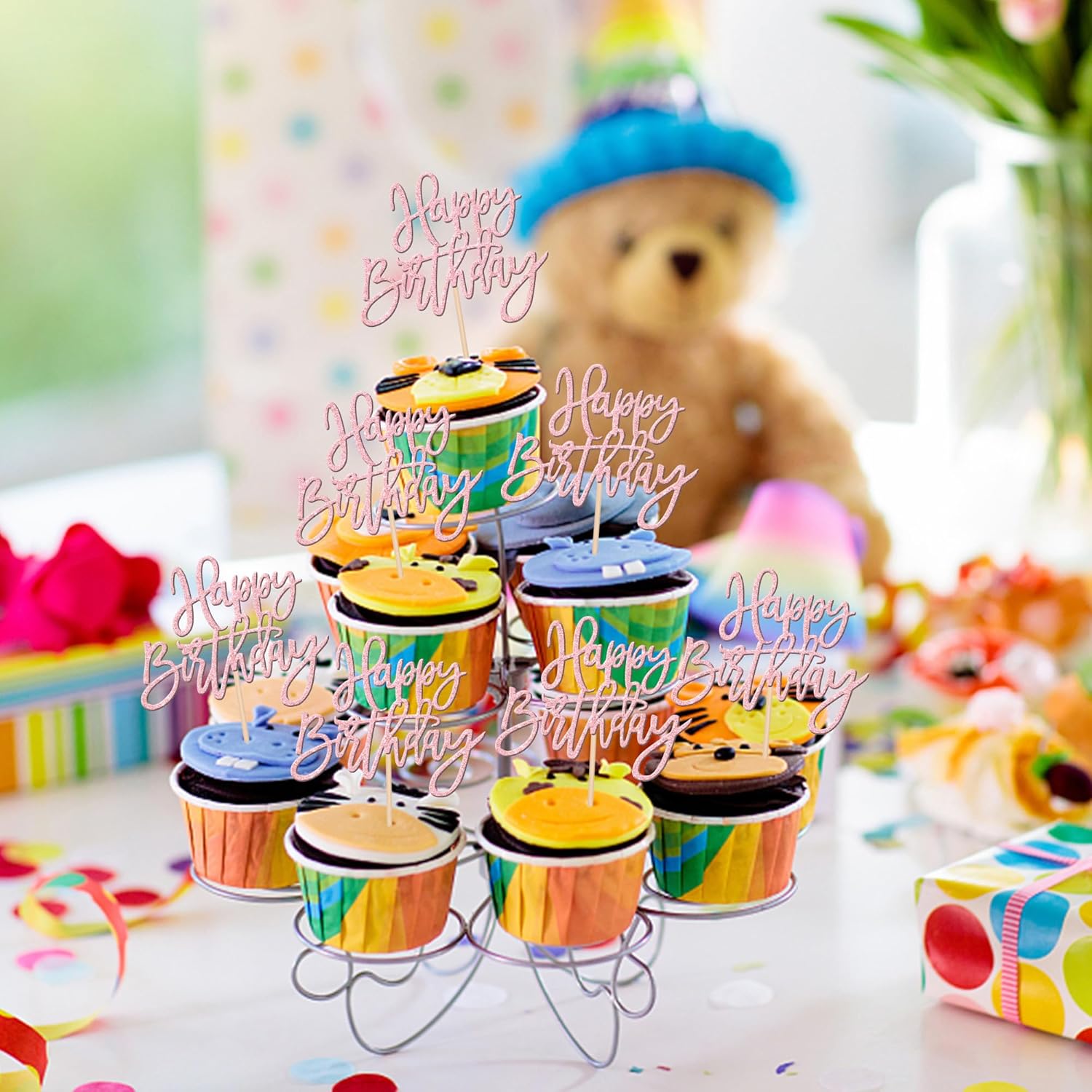- Wide Usages ! These happy birthday cupcake toppers are perfect for happy birthday theme party, anniversary celebrating theme party cupcake decorations. they can make your cupcake more attractive and bring the fun to your party.You can also apply them for ice cream, fruits, cookies and other desserts.