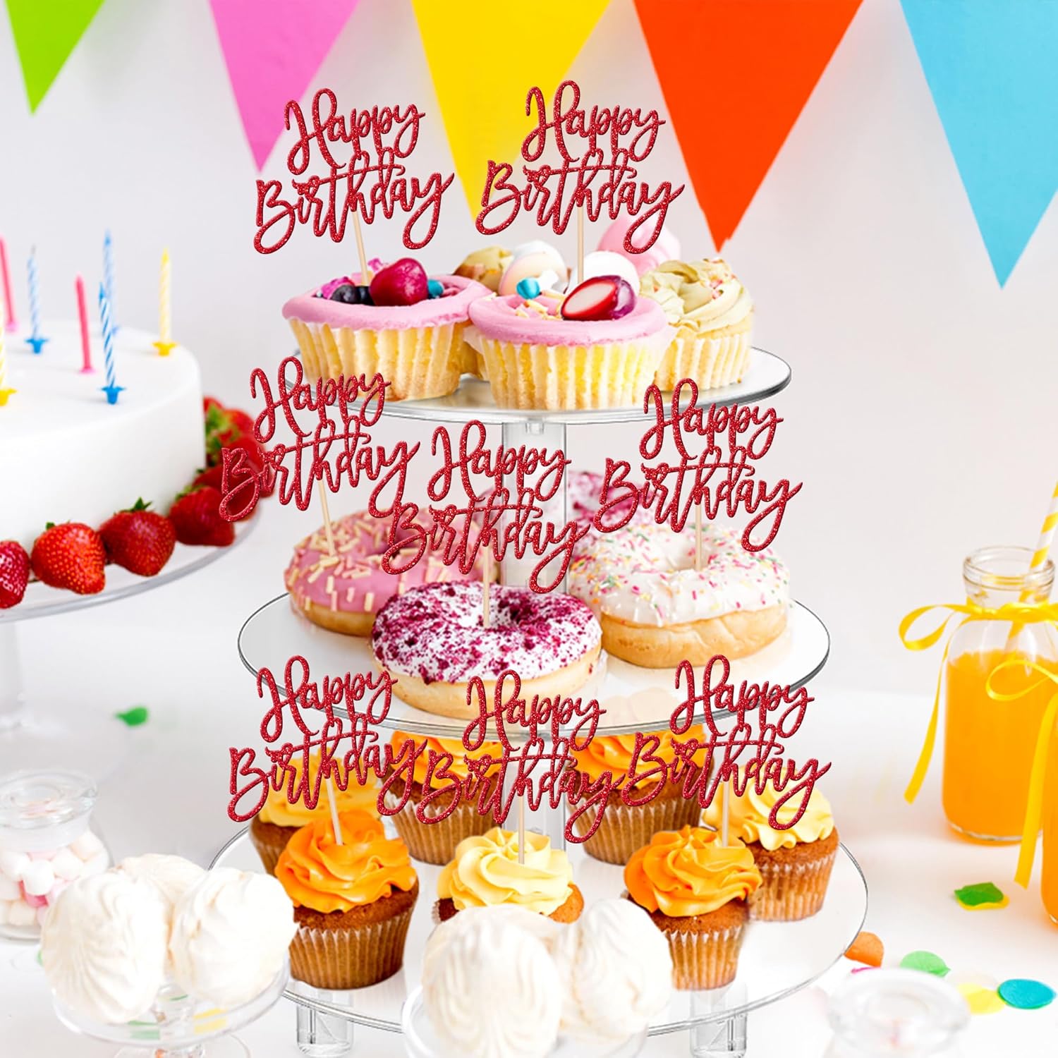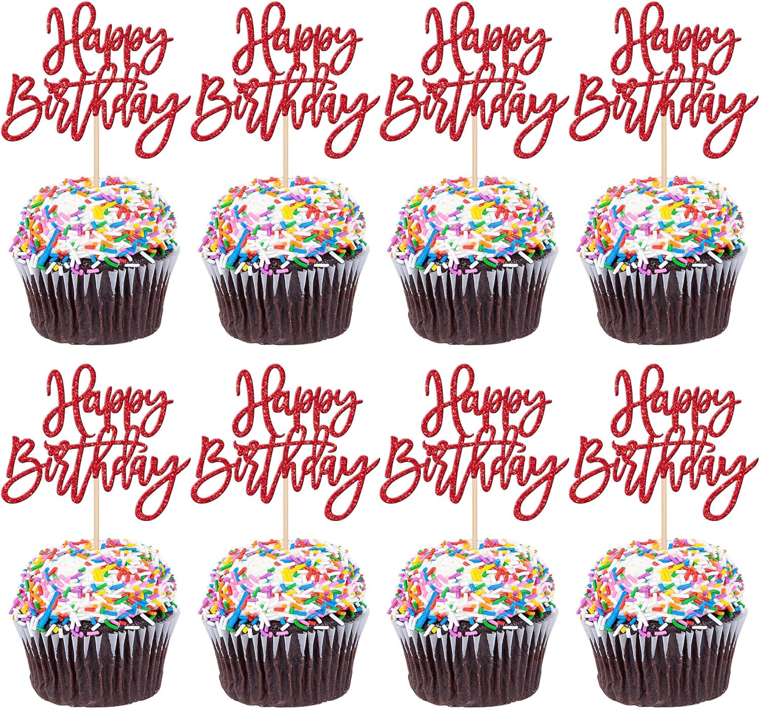- Wide Usages ! These happy birthday cupcake toppers are perfect for happy birthday theme party, anniversary celebrating theme party cupcake decorations. they can make your cupcake more attractive and bring the fun to your party.You can also apply them for ice cream, fruits, cookies and other desserts.