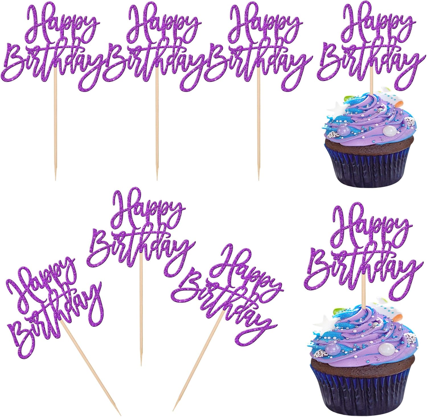 - Wide Usages ! These happy birthday cupcake toppers are perfect for happy birthday theme party, anniversary celebrating theme party cupcake decorations. they can make your cupcake more attractive and bring the fun to your party.You can also apply them for ice cream, fruits, cookies and other desserts.