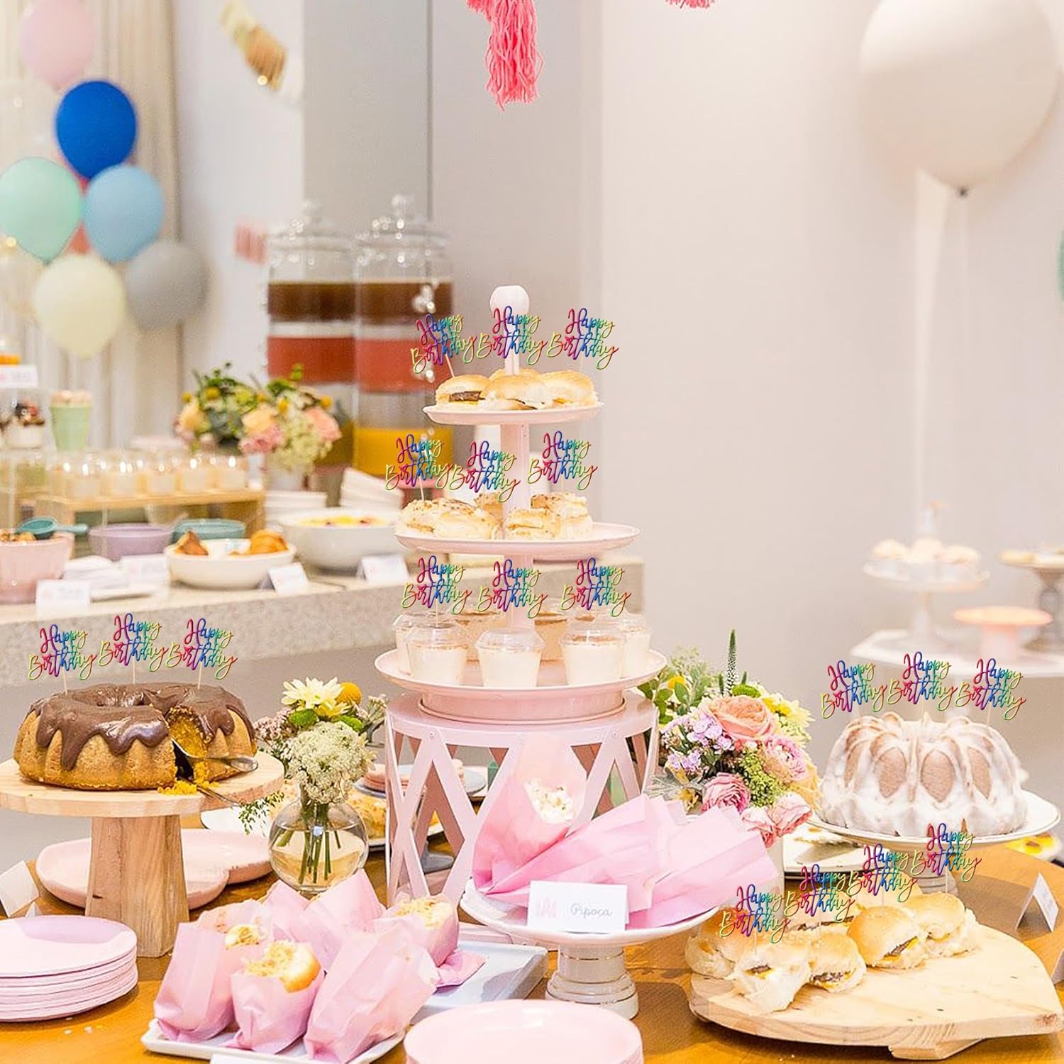 - Wide Usages ! These happy birthday cupcake toppers are perfect for happy birthday theme party, anniversary celebrating theme party cupcake decorations. they can make your cupcake more attractive and bring the fun to your party.You can also apply them for ice cream, fruits, cookies and other desserts.
