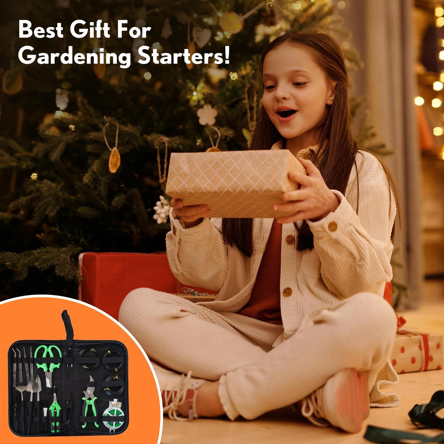 Bonsai Tools Kit 20 Pcs Garden Tools Set for Starters, Includes Bonsai Wire Kit, Plant Mat, Pruning Shears, Bonsai Scissors, Succulent Tools in Leather Storage Bag, Bonsai Gift for Adults