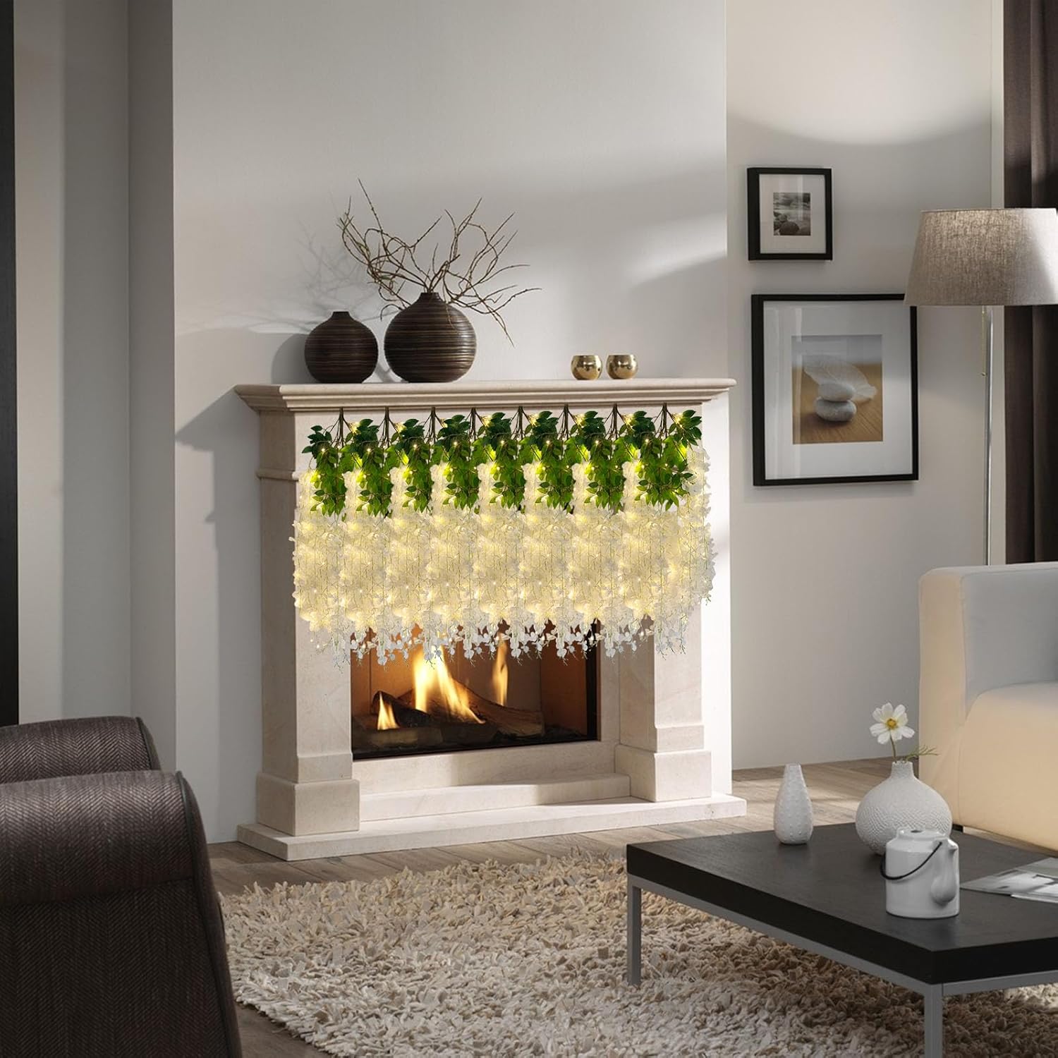 - 【Wisteria Flower Vines with Lights】Whether you decorate beautiful white wisteria floral garland with lights indoors or outdoors, you can achieve a magical decorative effect. Decorating the interior makes your home look full of life while decorating the exterior makes the environment more springy.With warm light string to make your decoration warmer.